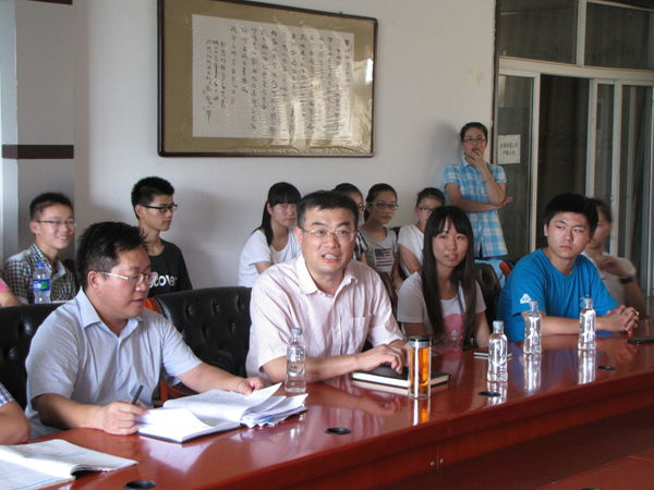 2013年8月14日下午,清华大学、北京邮电大学在校学生孟德望、杜天、崔兵来我校进行社会调查,县教育局副书记、总督学刘年,利辛一中党委副书记、副校长吴峰热情接待了他们。