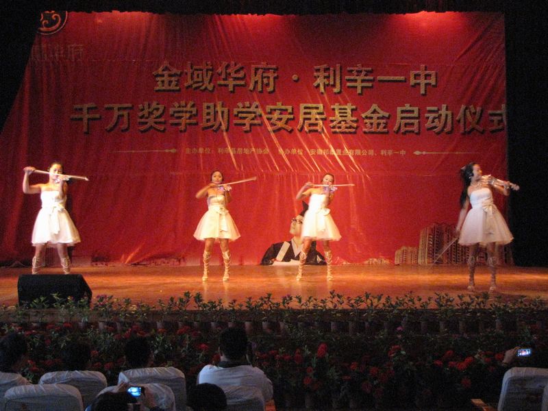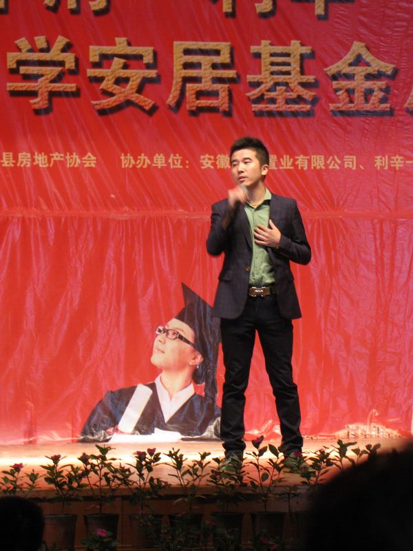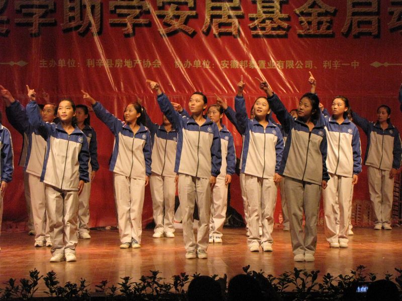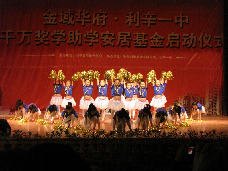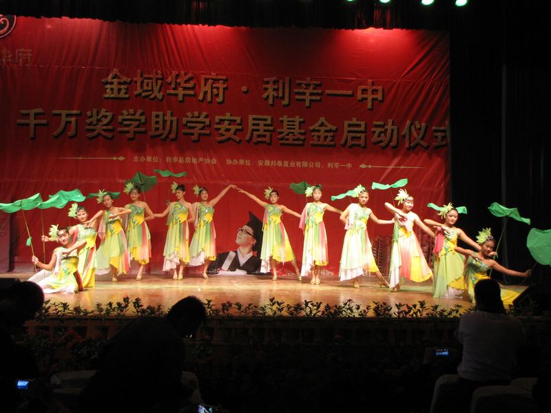 2013年9月28日上午,金域华府·利辛一中千万奖学助学安居基金启动仪式暨文艺汇演在利辛剧院隆重举行,安徽省对外友好交流协会常务副会长、安徽省人民对外友好协会副会长沙林森先生,亳州市外事办公室程亚妹主任,亳州市水务局赵德建局长,利辛县委常委、副县长芮绍勇,副县长金国珍,县政协副主席李红星,县房协徐会长、县住建委、房管局、财政局、教育局等机关领导,利辛一中潘化鹏书记,安徽邦泰置业有限公司董事长、爱国华侨陈齐博士等出席启动仪式。