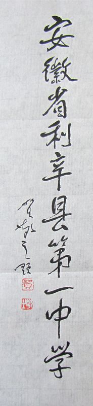 前中共中央宣传部副部长、文化部代部长、著名诗人贺敬之先生出于对教育的厚爱和对我校的提携,以89岁高龄抱病为我校题写校名,这是我校的巨大荣耀,这是我们每个利辛一中人为之自豪的荣光!我们一定不辜负贺老对我们的厚爱,更加勤勉地工作,一心从教,潜心育人,以传承人类精神文明为己任,为实现伟大的中国梦贡献出自己的一份力量。