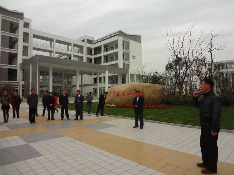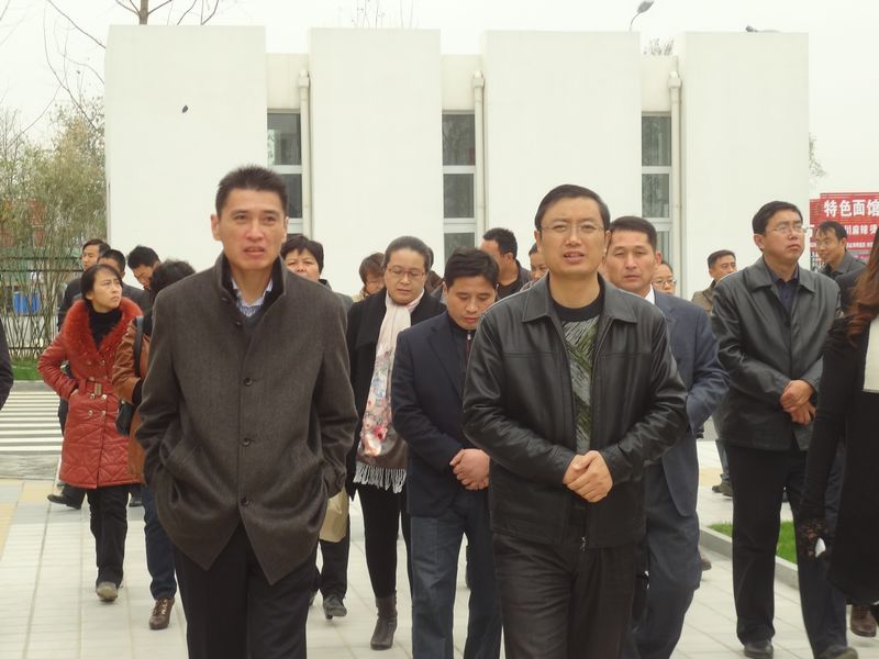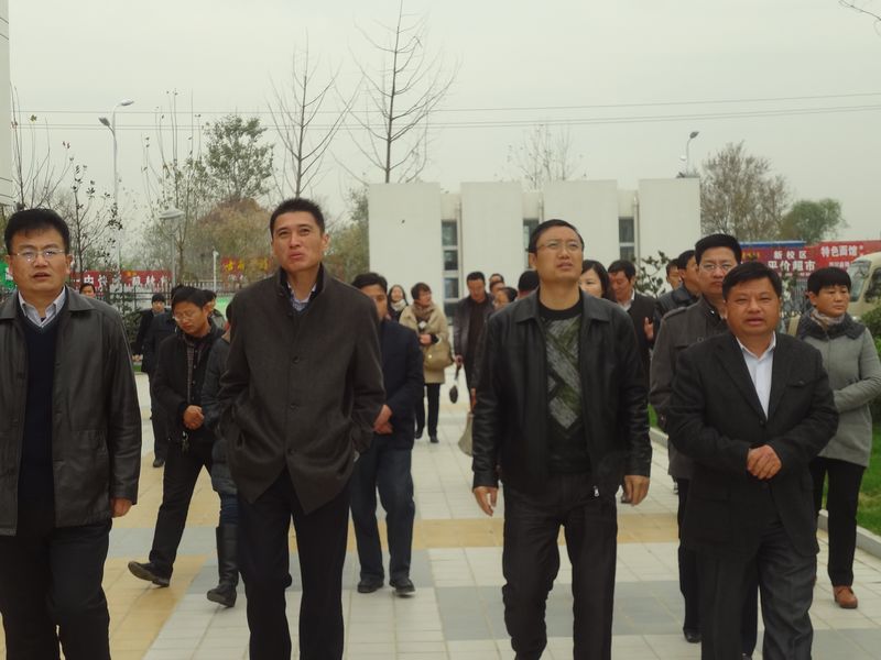 2013年11月12日蒙城县委常委、组织部长刘峰(左二)在校长王学哲(左一)的陪同下参观我校。