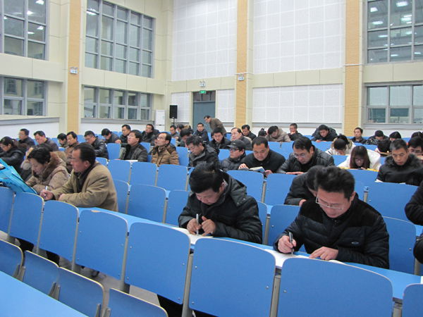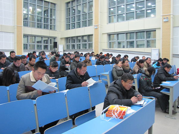 2014年1月2日课外活动时间,我校在滨河校区高一年级阶梯教室召开全体党员大会,会议由校党委书记潘化鹏主持。