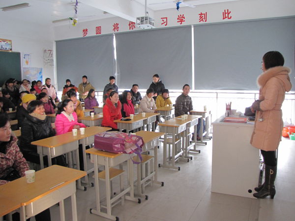 吴峰副校长(右)作报告,任锋副校长(左)主持家长会