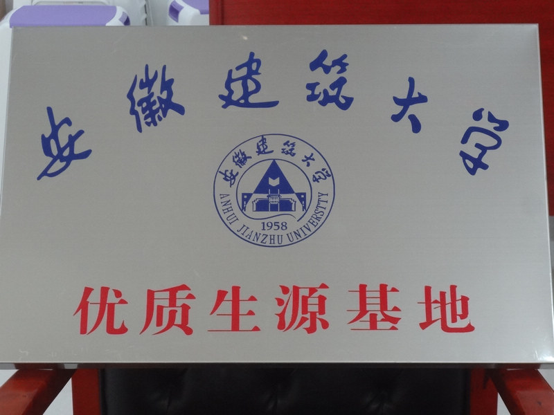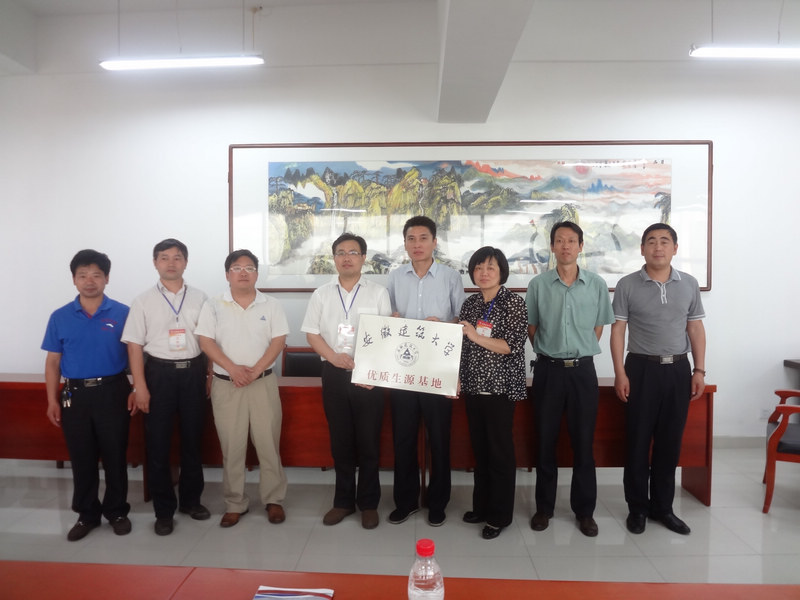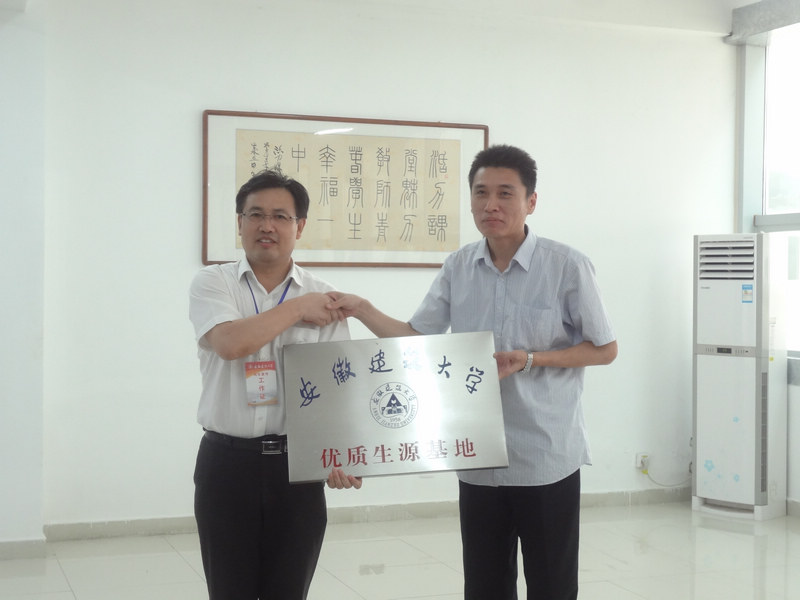 2014年6月28日下午,安徽建筑大学管理学院院长段宗志、曹泽副教授、汪曙副教授一行来到我校,代表安徽建筑大学授予我校“优秀生源基地”荣誉称号,王学哲校长代表我校领取了荣誉匾牌。潘化鹏书记、吴峰副校长、任锋副校长、纪检书记侯云玉等人参加了接待。