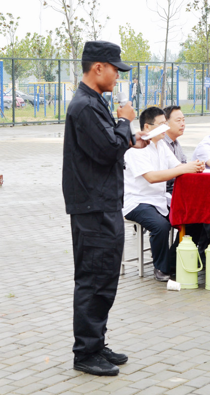 主席台:王1 学哲(右四)、潘化鹏(右三)、教官领导(左四)吴峰(左三)、任锋(右二)、王晓泉(左二)、侯云玉(右一)、代树峰(左一)