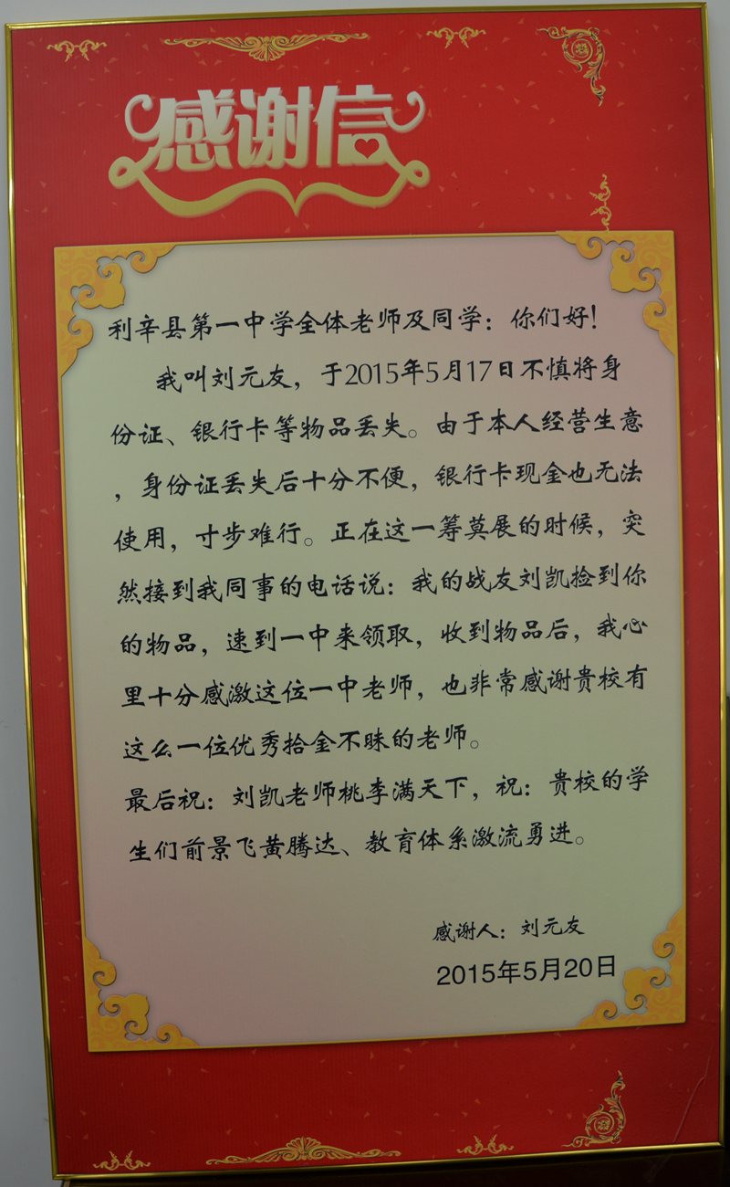 刘凯同志拾金不昧
