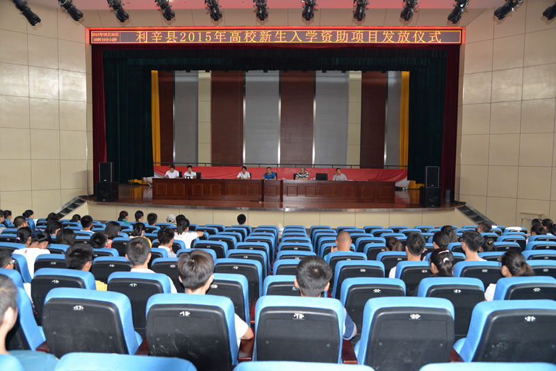 2015年8月26日上午,利辛县2015年高校新生入学资助项目发放仪式在图南会堂举行。县教育局副局长张延岭,利辛一中副校长潘化鹏,教育局资助中心工作人员,利辛一中、高级中学、启明中学的资助办工作人员等参加了发放仪式。