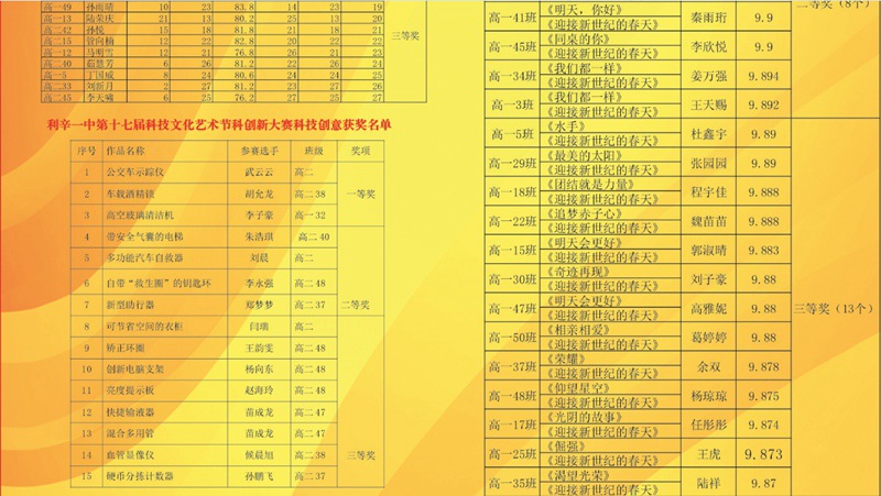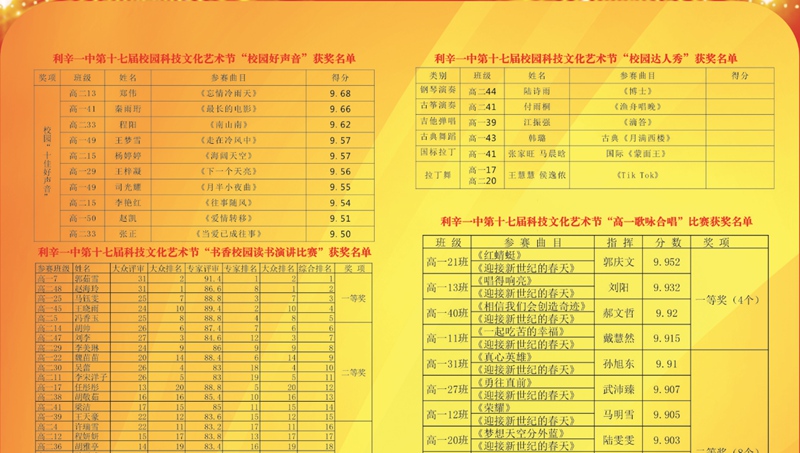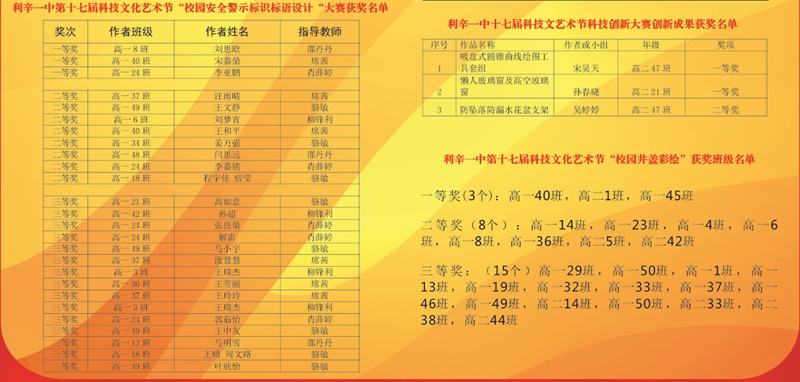 学校各项活动获奖学生名单