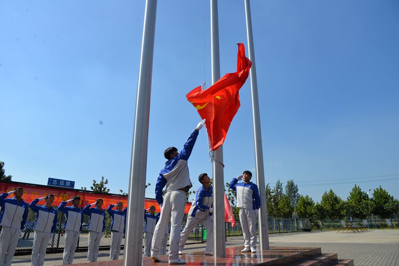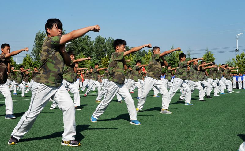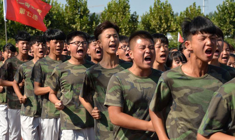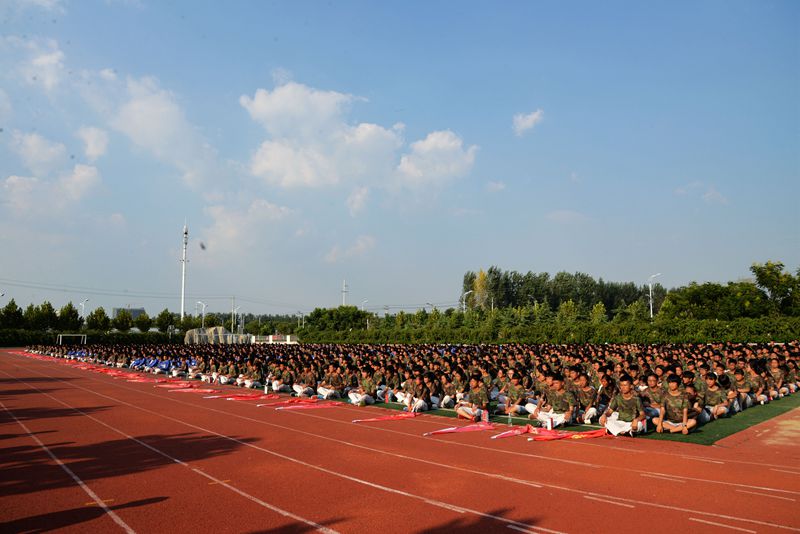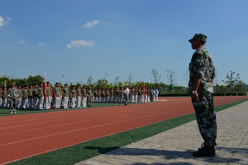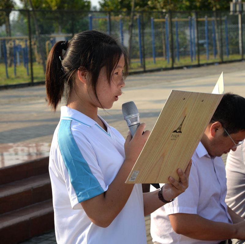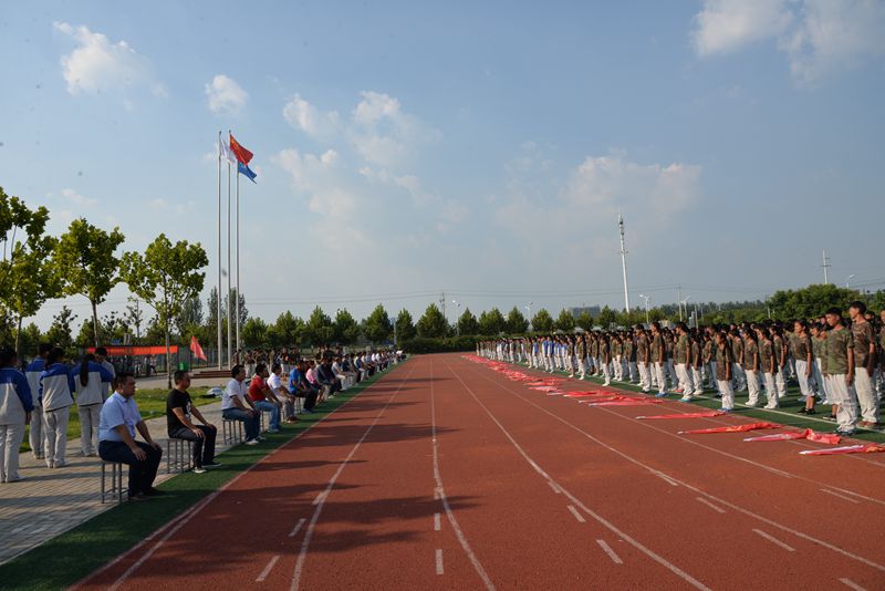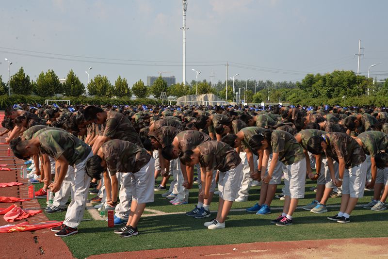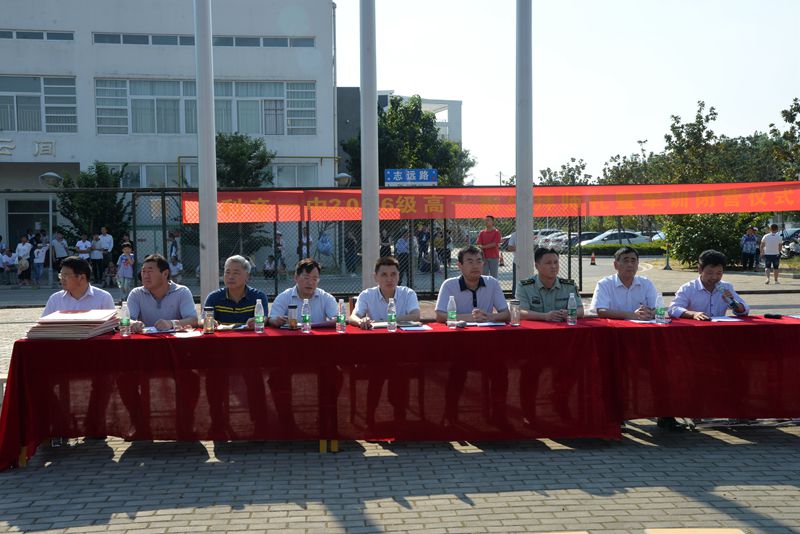 2016年8月28日下午,高一新生军训闭营式暨拜师礼仪式在操场举行,校长王学哲,武装部领导,副校长吴峰、任锋、王晓泉,纪检书记侯云玉,党委委员李文革,校长助理代树蜂,全体军训教官,高一全体班主任和学生参加仪式,党委书记、副校长刘年主持仪式。
