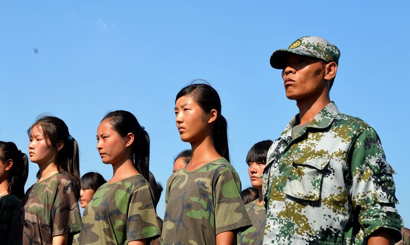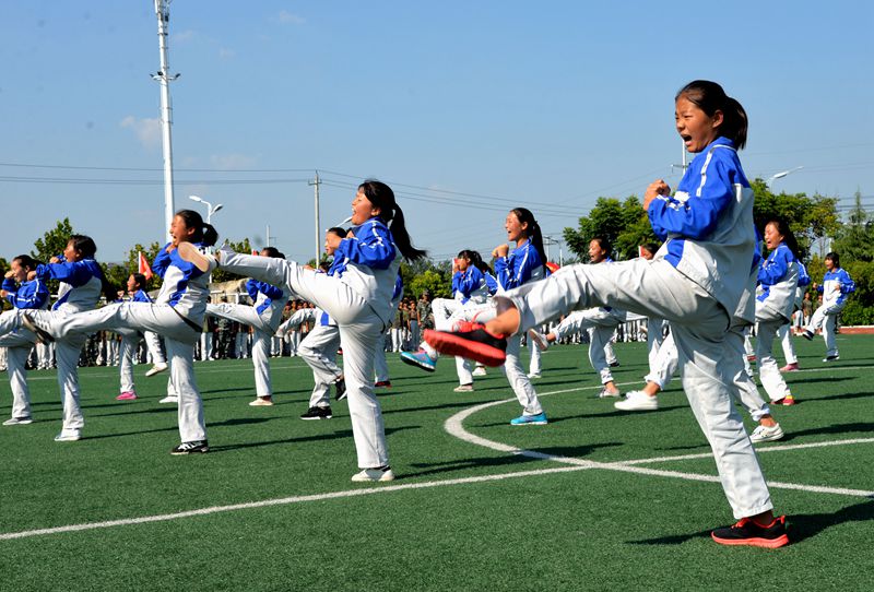 接下来是军训汇演。整齐的方队,矫健的步伐,嘹亮的口号,气势恢宏的军体拳表演,彰显出赫赫军威。