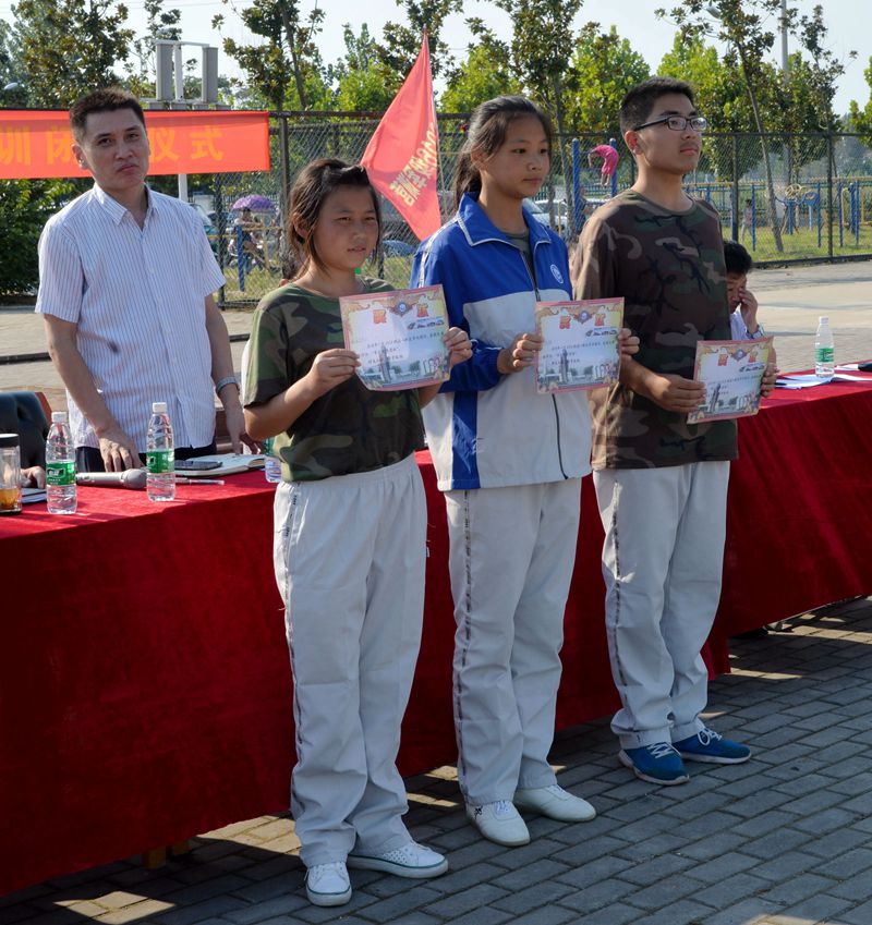 王学哲校长发表讲话,吴峰副校长宣布我校录取前100名学生名单,任锋副校长宣读优秀教官名单,王晓泉副校长宣读优秀学员名单,纪检书记侯云玉作军训总结,党委委员李文革宣读优秀班级名单和文明班级名单,校长助理代树峰宣读先进个人名单。校领导现场给获奖集体和个人颁奖。