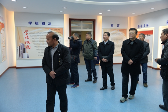 2016年11月22日,涡阳实验中学侯校长一行在我校校党委书记、副校长刘年、校长办公室主任孙良斋的陪同下参观我校校史馆。