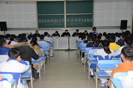 2016年11月22日晚,我校在高一阶梯教室召开高一期中考试优秀学生座谈会,校党委书记、副校长刘年,党委副书记、副校长吴峰,纪检书记侯云玉,教科研中心主任王飞,教导处副主任王永先和高一年级期中考试前200名同学参加会议,会议由侯云玉书记主持。