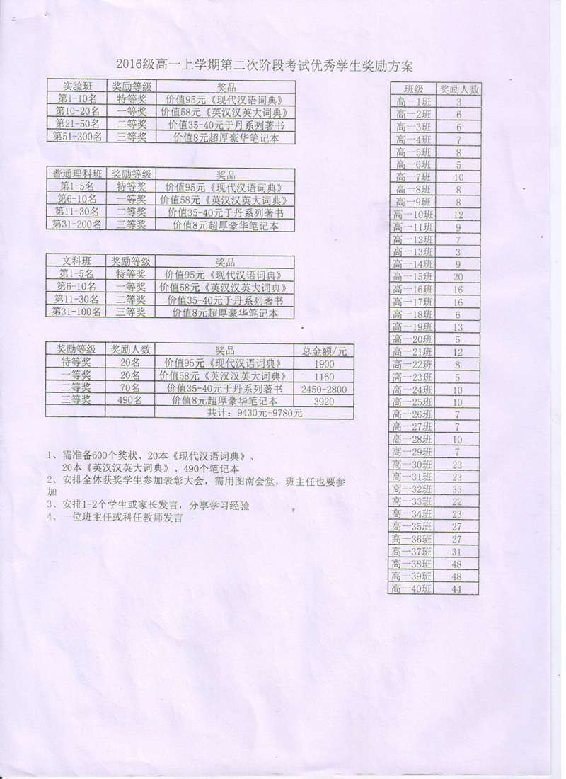 (会议图片后附有本次考试优秀学生奖励方案和获奖学生名单)