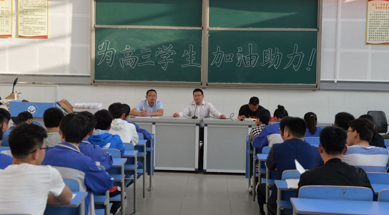 2017年5月2日下午,我校在2014级阶梯教室召开为高三学子加油助力会,校长助理代树峰,学生生活部副主任崔嵬、袁立志和全体高三年级各班班长参加会议,代树峰主持会议。