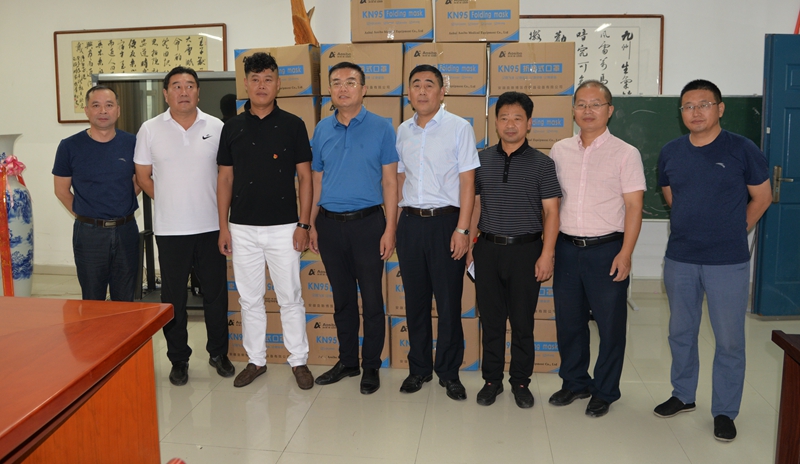 企业发展,不忘初心,回报社会,2020年8月28日,利辛县餐饮行业协会会长张振廷向利辛一中捐赠6万只秋季清凉型口罩,助力利辛一中疫情防控。利辛一中党委书记、校长刘年,组织委员、副校长任锋,党委委员李文革,党委委员、副校长朱文成,党委委员郑庆,校长助理代树峰,利辛县餐饮协会执行秘书长周大亮出席捐赠仪式。