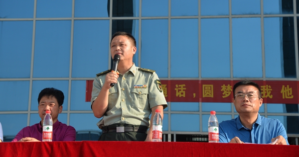刘年同志致词,介绍一中基本校情和办学理念,要求同学们严守纪律,刻苦训练,团结合作,磨练坚强意志,提高团队意识,增强国防观念,以优异的军训成绩打下高中生活的良好开端。
