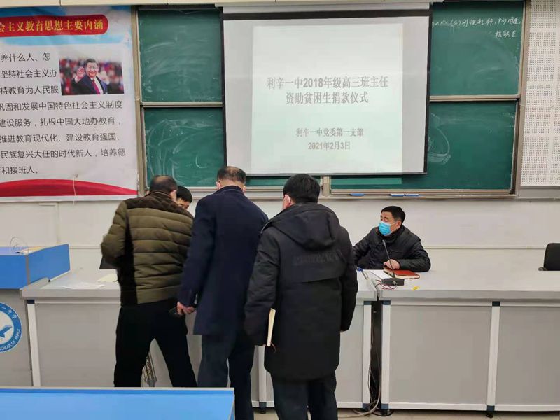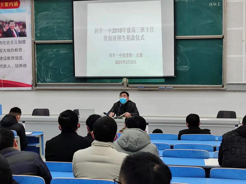 2021年2月3日上午,利辛一中高三年级班主任资助贫困生捐款仪式在高三北阶梯教室隆重举行。会上,利辛一中党委委员,副校长任锋同志向全体班主任发出了倡议,号召我们的党员教师和班主任教师心系贫困学生,为贫困学生上好学提供支持,助力贫困生健康成长,帮助贫困生家庭纾困解难。