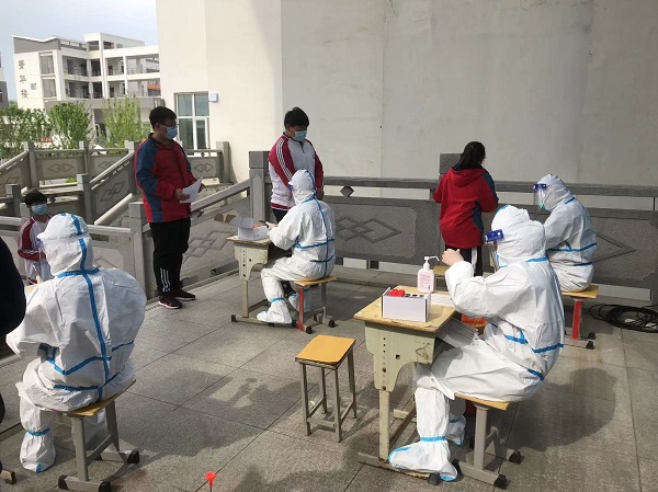 2022年4月11日,为从严从紧抓实落好我校疫情防控工作,我校进行全校师生常态化核酸检测,利辛县人民医院医护人员为我校师生做核酸检测,利辛一中党委书记、校长刘年,组织委员、副校长任锋,党委委员、副校长朱文成,校长助理代树峰现场指挥师生做核酸检测,我校志愿者教师全程协助医户人员进行核酸检测工作,我校师生严格遵守核酸检测期间规范佩戴口罩,人与人之间保持一米以上距离。