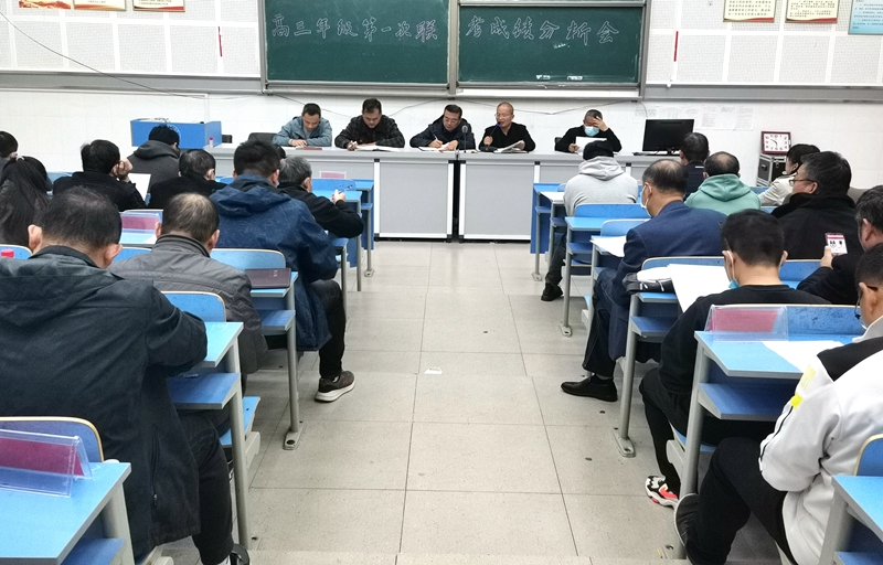 2022年10月13日,利辛一中在高三年级阶梯教室召开高三年级第一次联考分析会,校党委书记、校长刘年,党委委员、副校长朱文成,第三支部书记李宁,奥赛中心副主任刘焕山,高三年级管理干部武高峰等全体高三教师参加会议,朱文成同志主持会议。