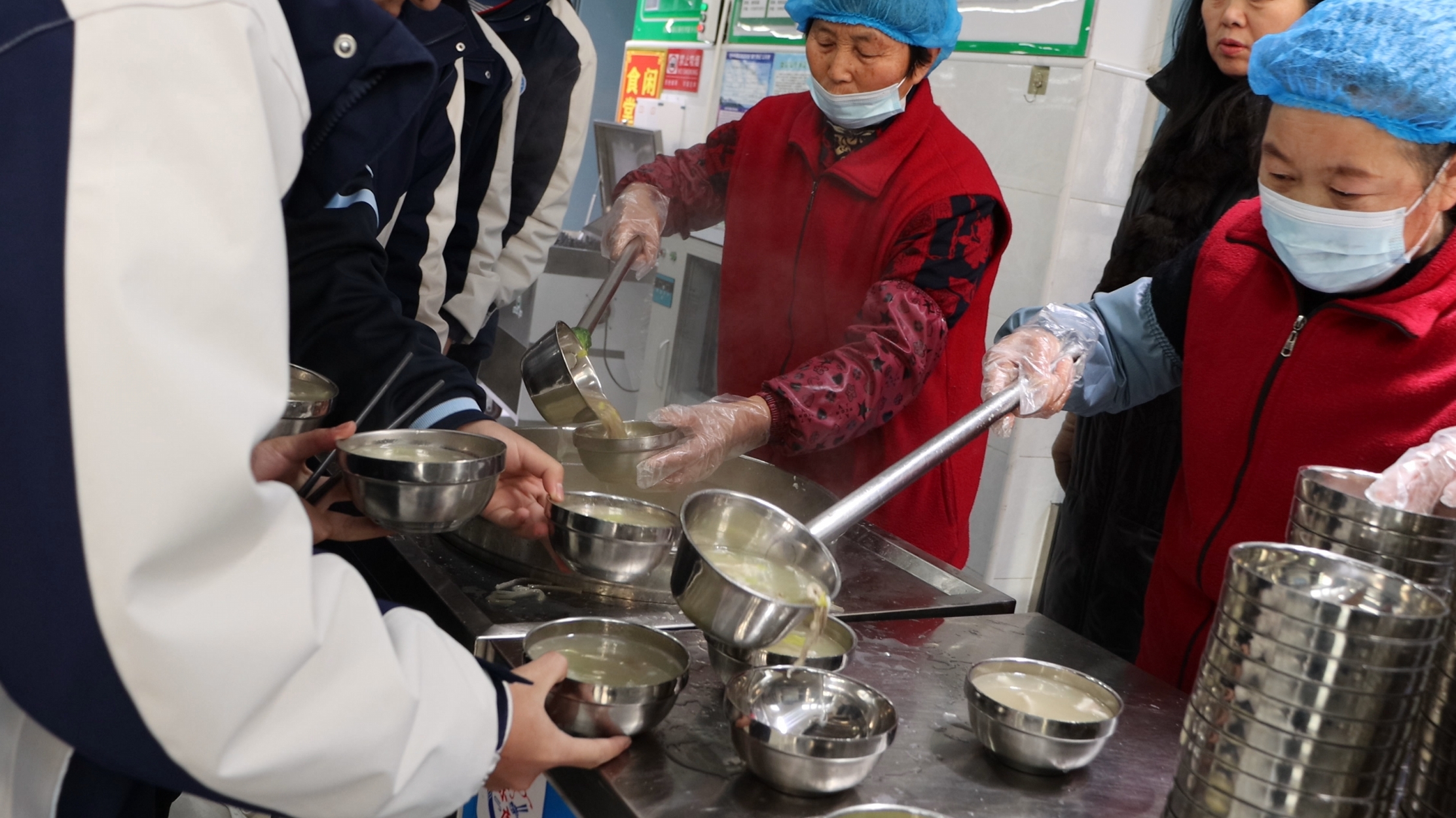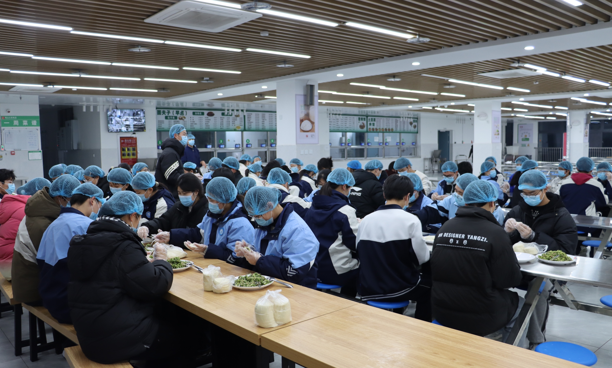 2024年12月21日、22日,利辛一中北校区留校师生在二食堂包饺子共同庆祝冬至。22日中午一食堂为师生提供免费羊肉汤,二食堂为师生提供免费饺子。