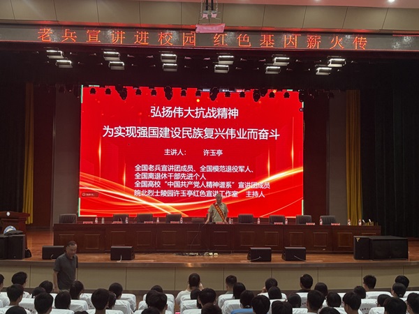 许玉亭以《弘扬伟大抗战精神,为实现强国建设民族复兴伟业而奋斗》为题,通过讲述红军故事,揭示了什么是伟大的抗战精神,并结合自己的红色宣讲经历告诉同学们如何在新时代弘扬好、传承好抗战精神。宣讲过程中,现场多次响起热烈的掌声,许多师生被老兵的故事感动得热泪盈眶。此次活动,帮助广大学生更加深刻地了解了革命历史。同学们纷纷表示,要以老兵为榜样,将爱国之情转化为学习的动力。