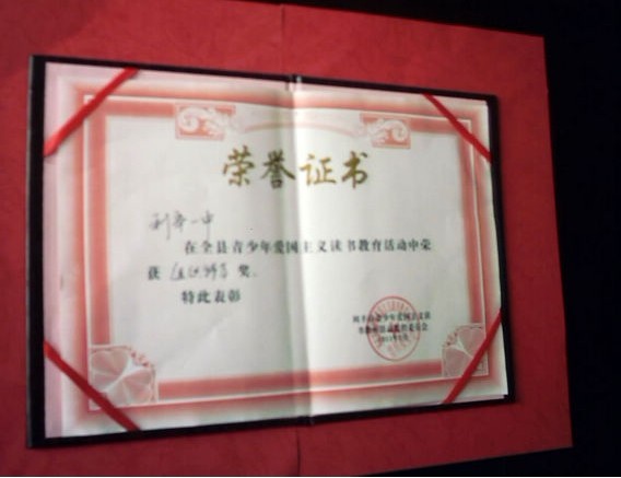 年全县“青少年爱国主义读书教育活动”中荣获组织特等奖。