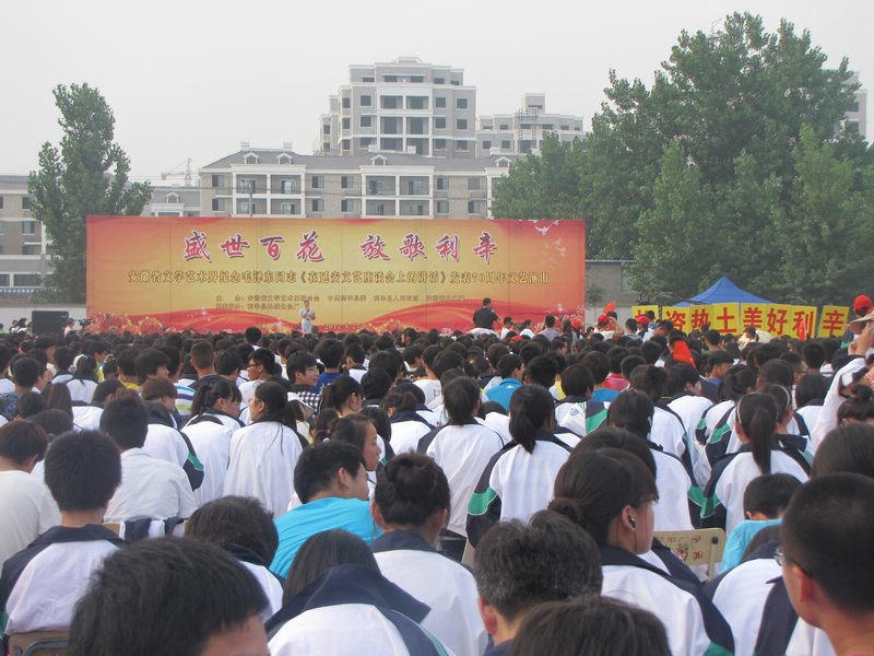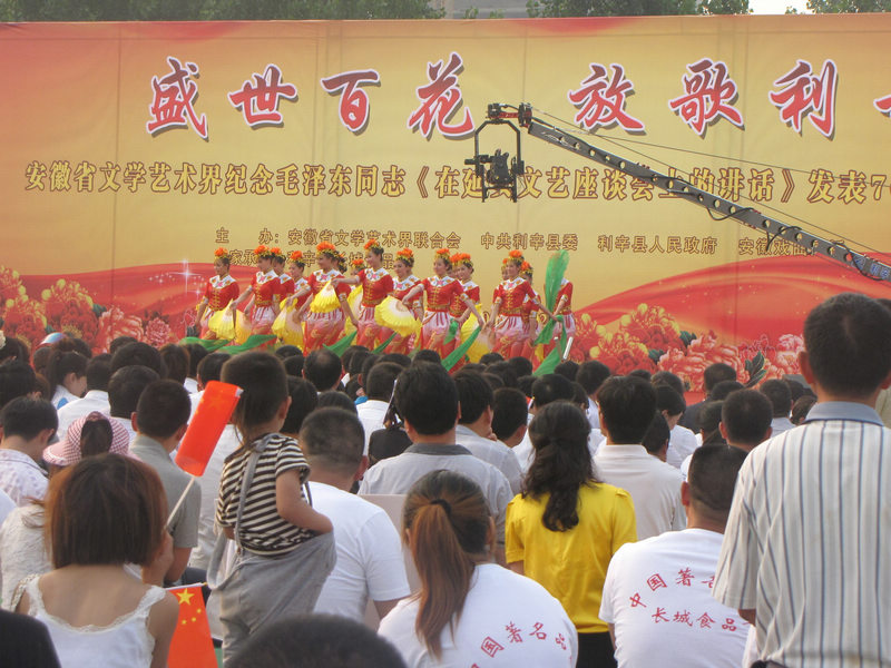 2012年5月27日17时,安徽省文化艺术界为纪念毛泽东同志《在延安座谈会上的讲话》发表七十周年,坚持文艺为社会主义服务、为人民群众服务的方针,举行“盛世百花,走进利辛”大型文艺演出,把精彩的文艺节目送到基层。我校广大师生和全县各单位代表观看了演出。