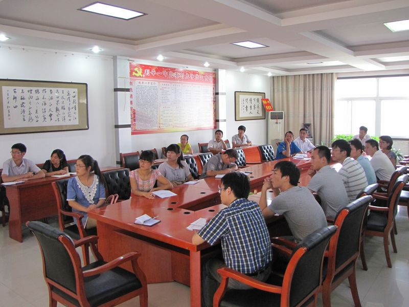 会上,吴校长作了《立足基础,注重提高,实现跨越》的报告,提出教师应拥有对学生深挚的爱心和宽广的胸怀,以及熟练掌握规范的教学流程。任校长介绍了我校今年的高考和高一招生情况,希望新教师能够科学定位、依法执教,顺利完成角色转换,尽快成长为合格的教师。侯云玉书记带领新教师学习了校规校纪,要求新教师要增强纪律观念。陆伟主任提出新教师要处理好自己与校领导、自己与同事和自己与学生的关系,服从学校工作的大局,提高执行力。张帮群主任强调要多研究教材、多听名师的课、多研究学生、多听学生对教学的意见,不必拘泥于条条框框,学生最喜欢的教学就是最好的教学,老师最大的本事就是引领学生自主学习、自主教育。最后,新教师和本学科的学科组长见面交流。