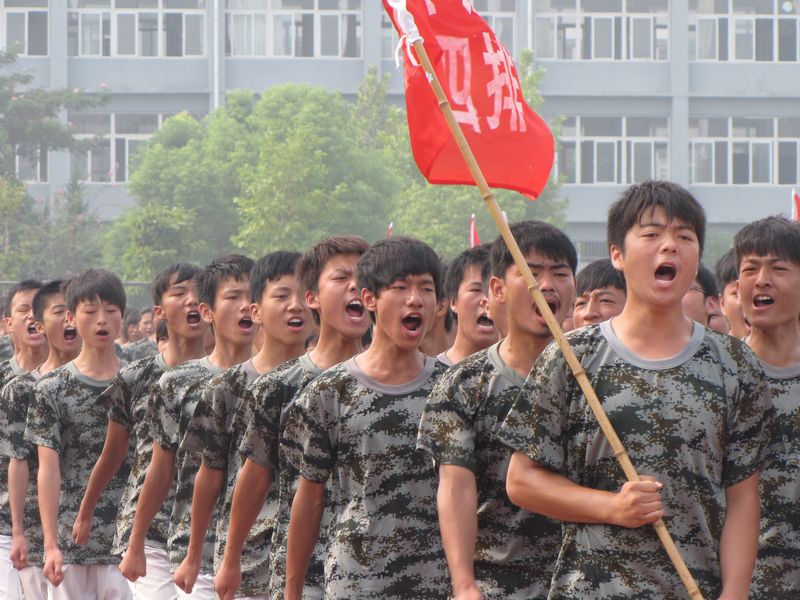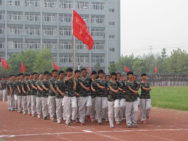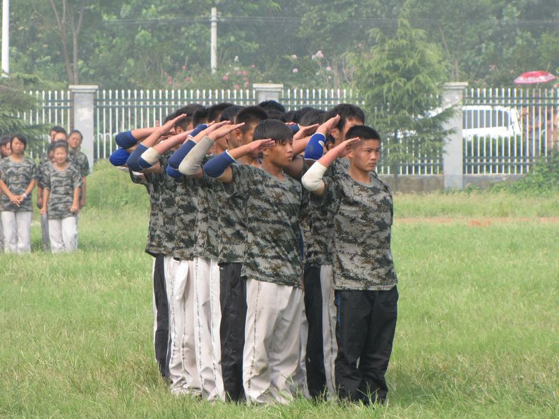 庄严的升国旗仪式拉开了闭营式的序幕。伴着雄壮的阅兵式进行曲,校领导步入阅兵场,检阅身着戎装的47个学生方阵。同学们军容严整,军姿挺拔,黝黑的面孔上透着昂扬的士气。每走过每一个方阵,王学哲校长都亲切地向同学们问好,一声高过一声的“首—长—好”、“为祖国争光”的口号响彻阅兵场。