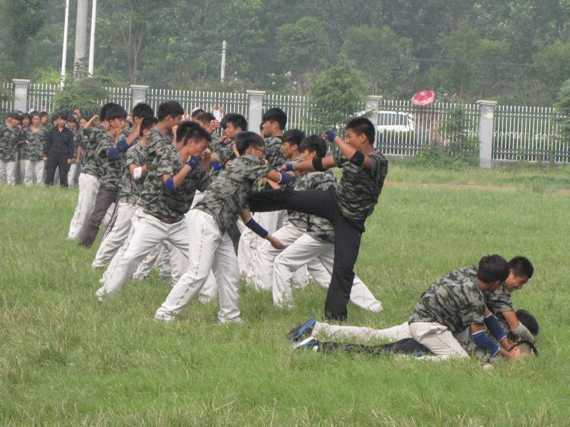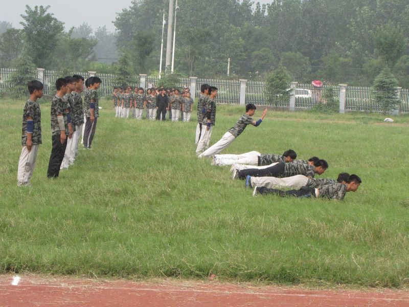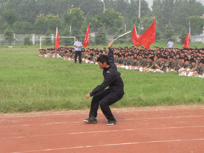 军体拳表演更加精彩,教官洒脱轻灵的双节棍表演;男生表演队气势如虹的呐喊、刚健有力的招式;女生表演队富有韵律的动作,整齐划一的出招,赢得了阵阵掌声。
