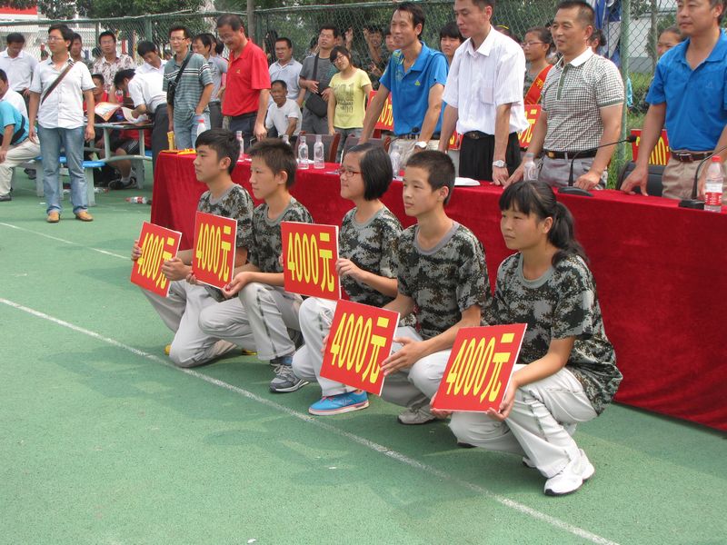 会操完毕,张延龄副局长、王学哲校长和任锋副校长发表了热情洋溢的讲话,王晓泉副校长宣读中考前百名中进入我校就读学生名单,纪检书记侯云玉宣读会操获奖班级和个人名单,学校还对进入我校中考成绩优异的同学颁发了奖学金。