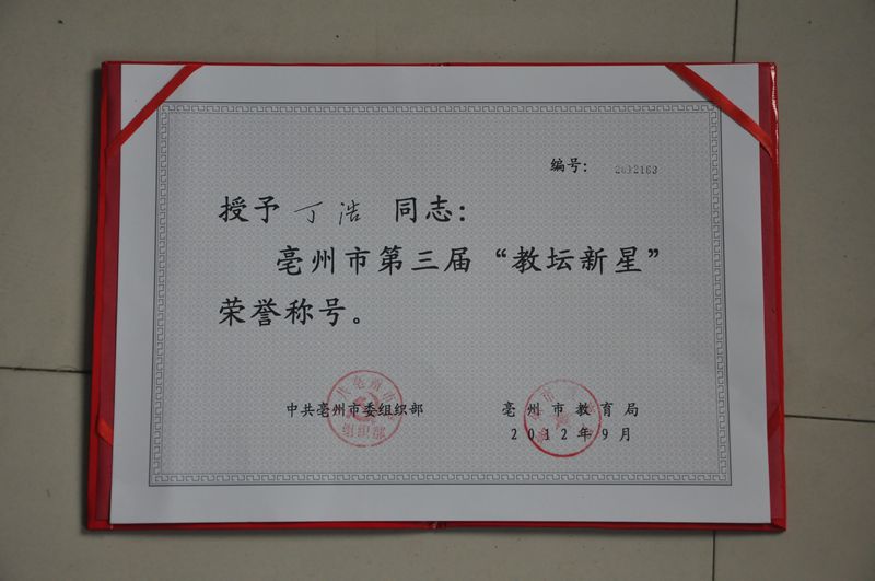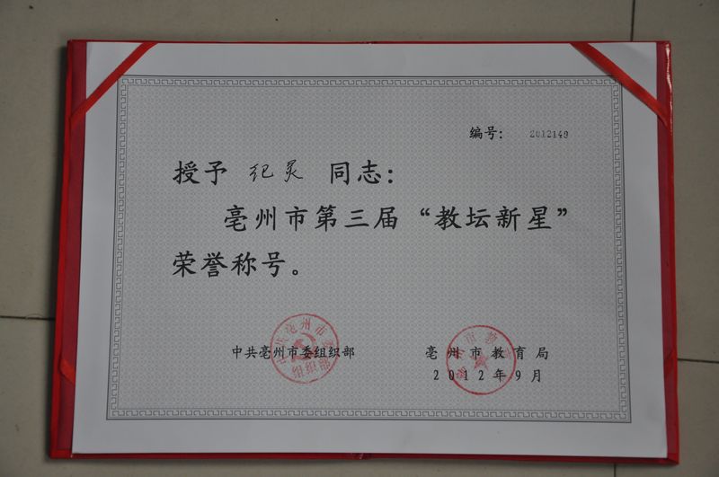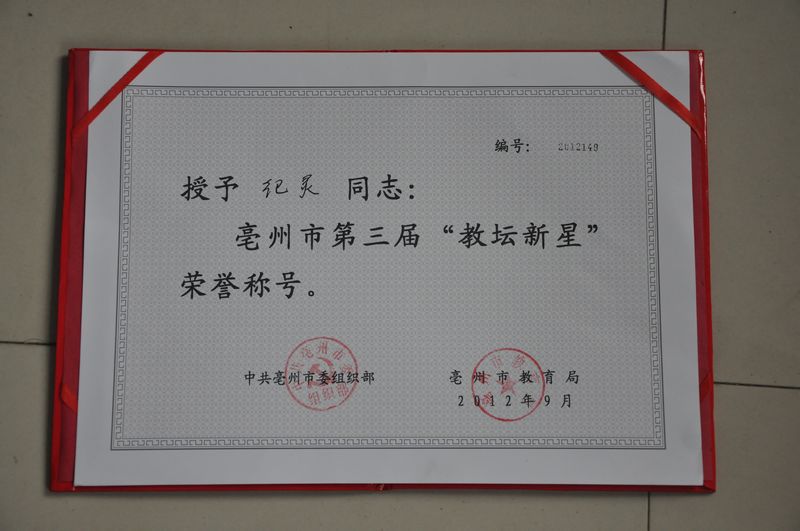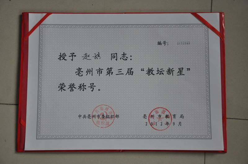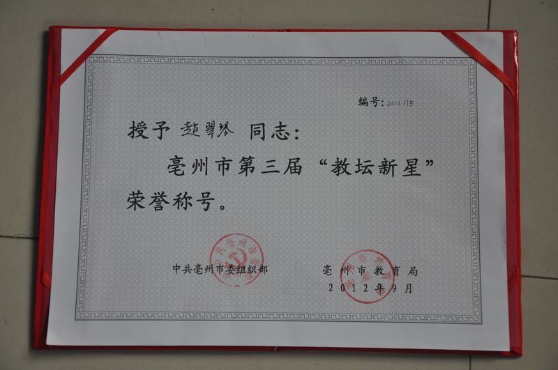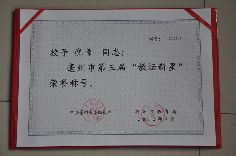 位同志喜获亳州市第三届教坛新星称号。