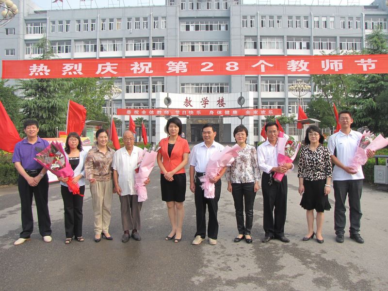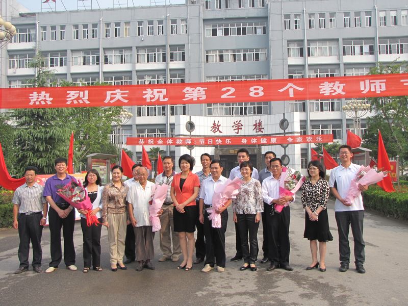 在第28个教师节即将来临之际,县委副书记程莉、副县长金国珍、县政协副主席李红星、县政府办公室主任孙明峰、县教育局党组书记王玉实来我校慰问我校教师。