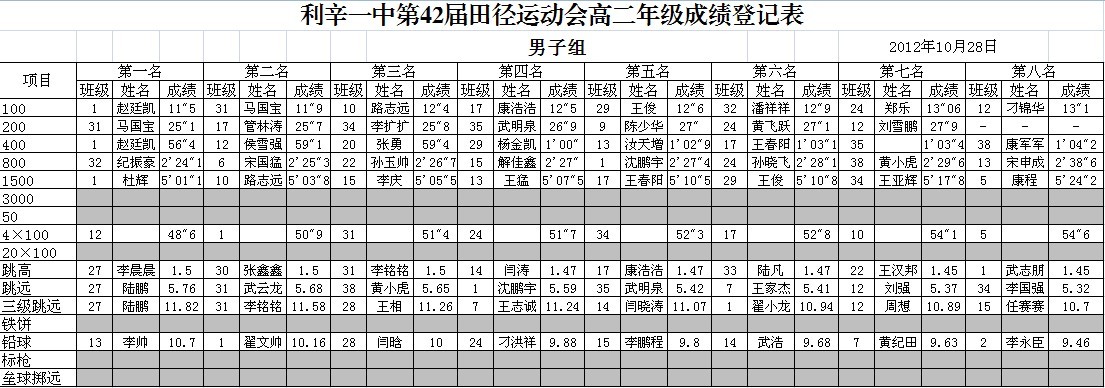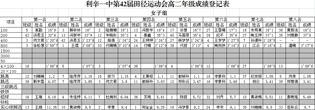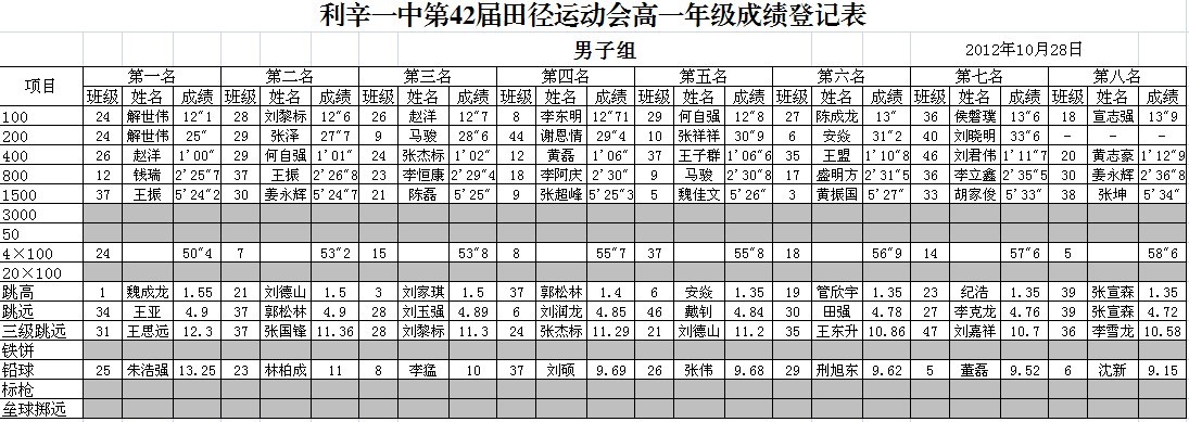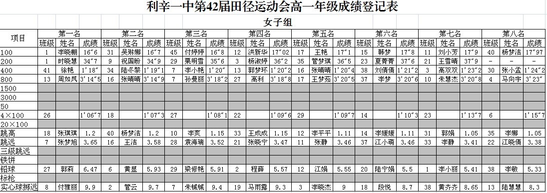利辛一中第42届运动会各班成绩名次