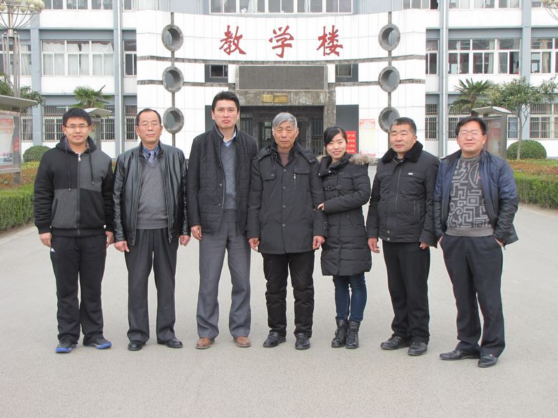 王学哲校长(左三)、吴峰副校长(右一)、刘国勇老师(左四)、陈凤清(左二)、王晓蕾的父亲(右二)、王晓蕾(右三)、王晓蕾男友(左一)
