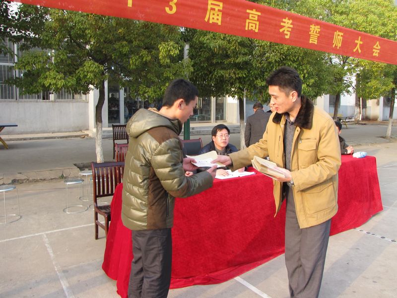 会上,王学哲校长发表了热情洋溢的讲话,并对同学提出三点要求:一要注意安全,不要到摊点吃饭,同时要注意交通安全;二要坚持锻炼身体;三是同学们一定要互相帮助、互相鼓励,因为高三的最后80天足以改变人的一生,高三最后的80天也许是人生中最温暖的记忆。潘化鹏书记宣读了江南十校联考奖项标准。吴峰副校长宣读江南十校联考优秀学生名单,并阐述了最后80天学校高三备考规划。教师代表江在伟老师详细介绍了高考备考方法。高三(1)班学生陆梦真代表全体高三学生作表态发言,并带领全体学生庄严宣读迎战高考誓词。