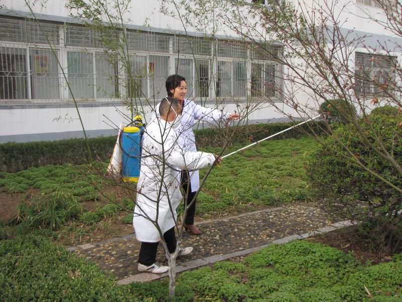 2013年3月18日早晨,在总务主任陈士侠的领导下和校医汪伟伟指导下,学校集中开展一次春季防疫消毒工作。