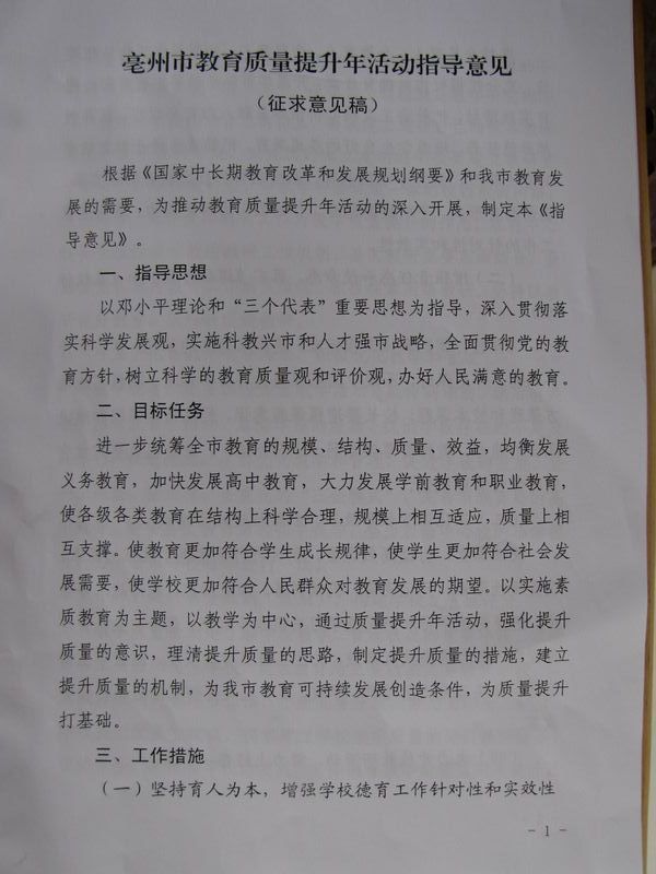 亳州市教育质量提升年活动指导方案(征求意见稿)