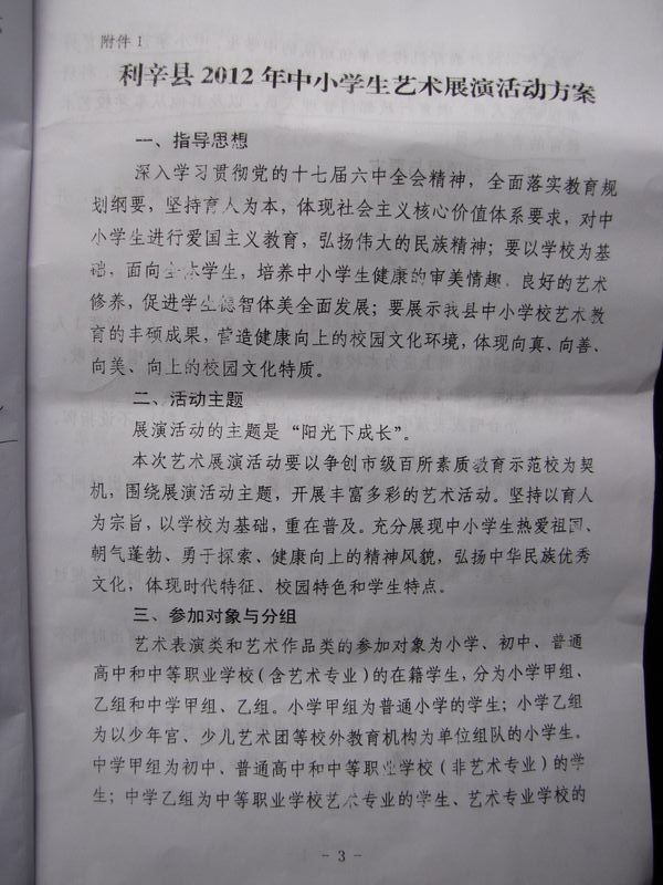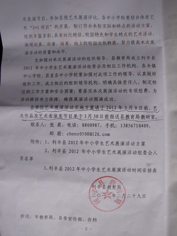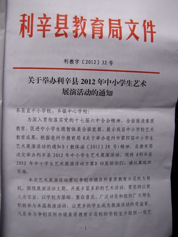 关于举办利辛县2012年中小学艺术展演活动的通知