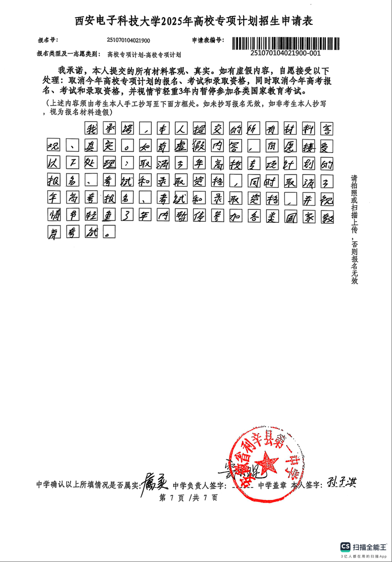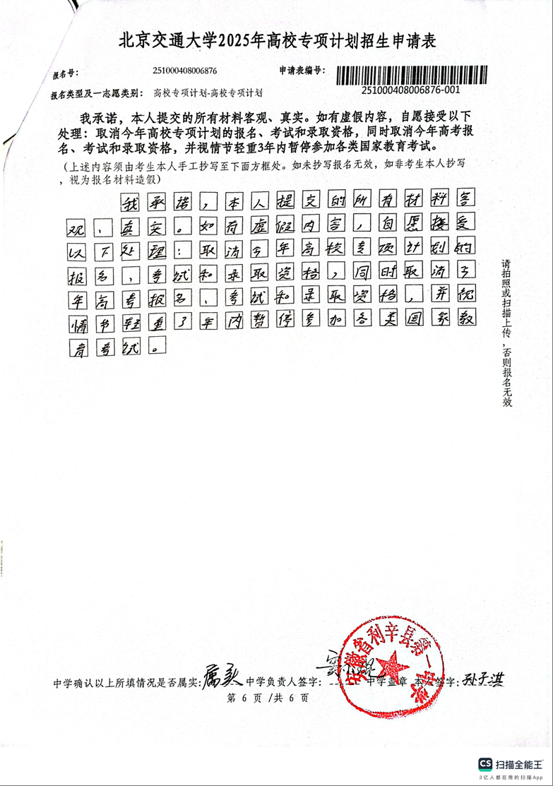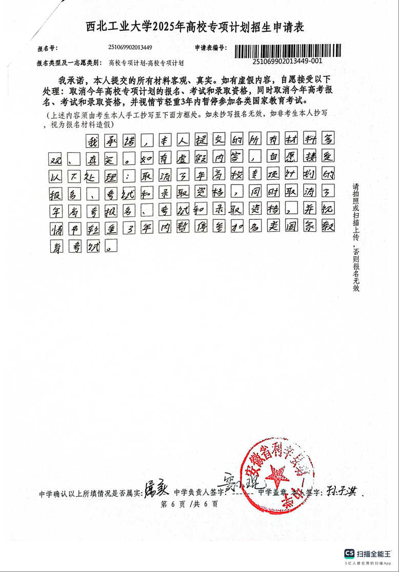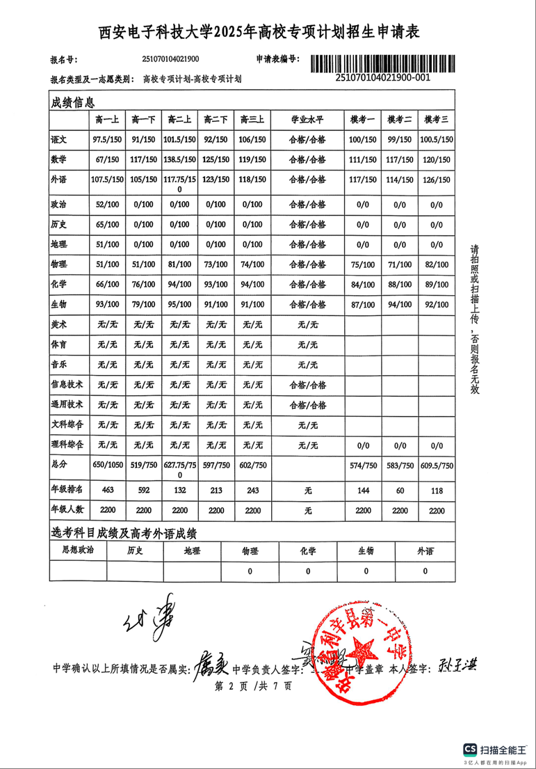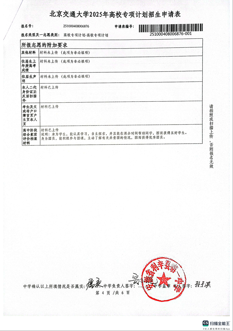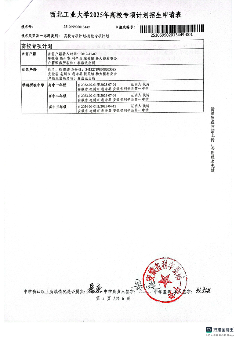 利辛一中2025届报考高校专项计划学生公示——孙子淇