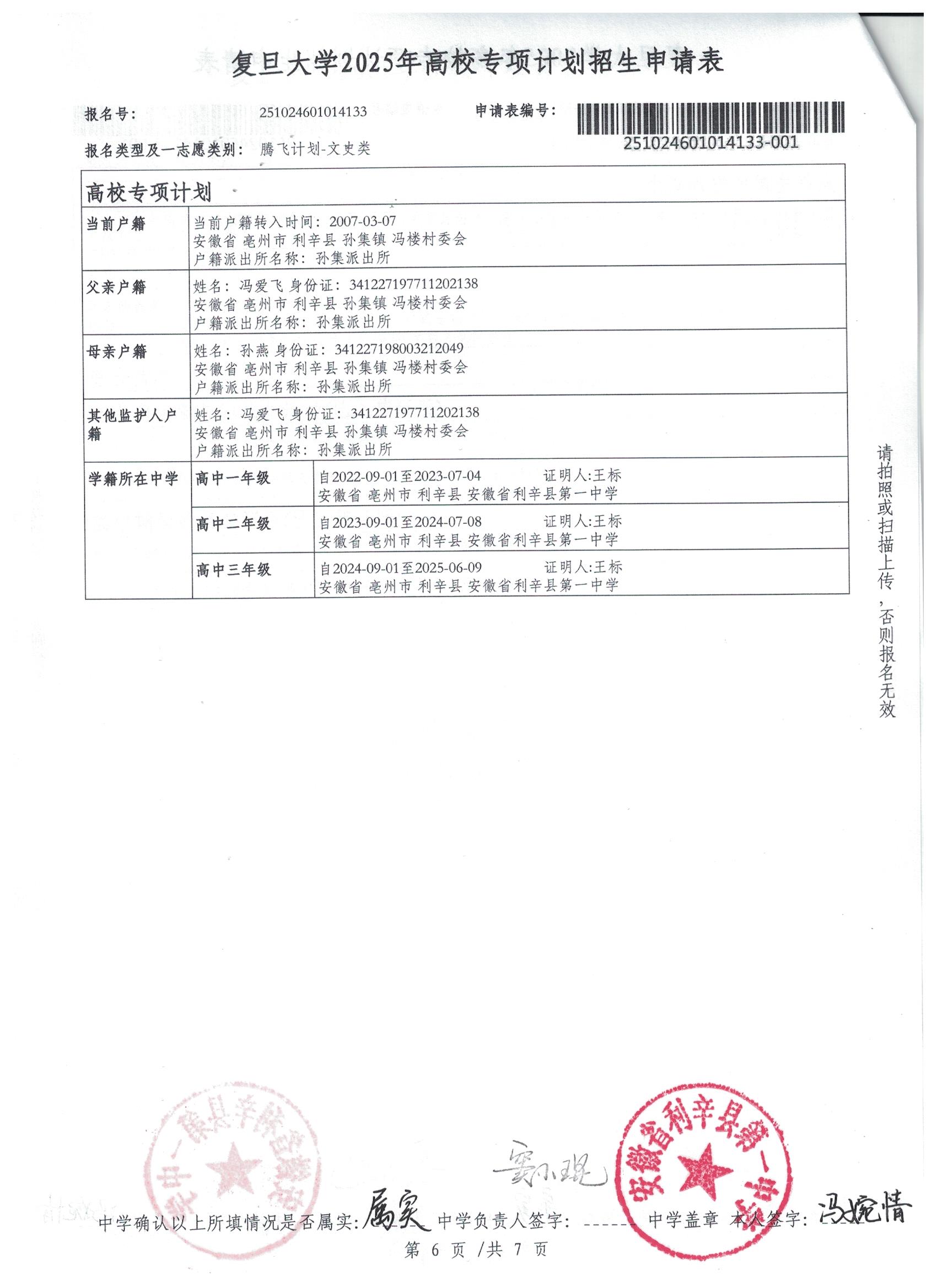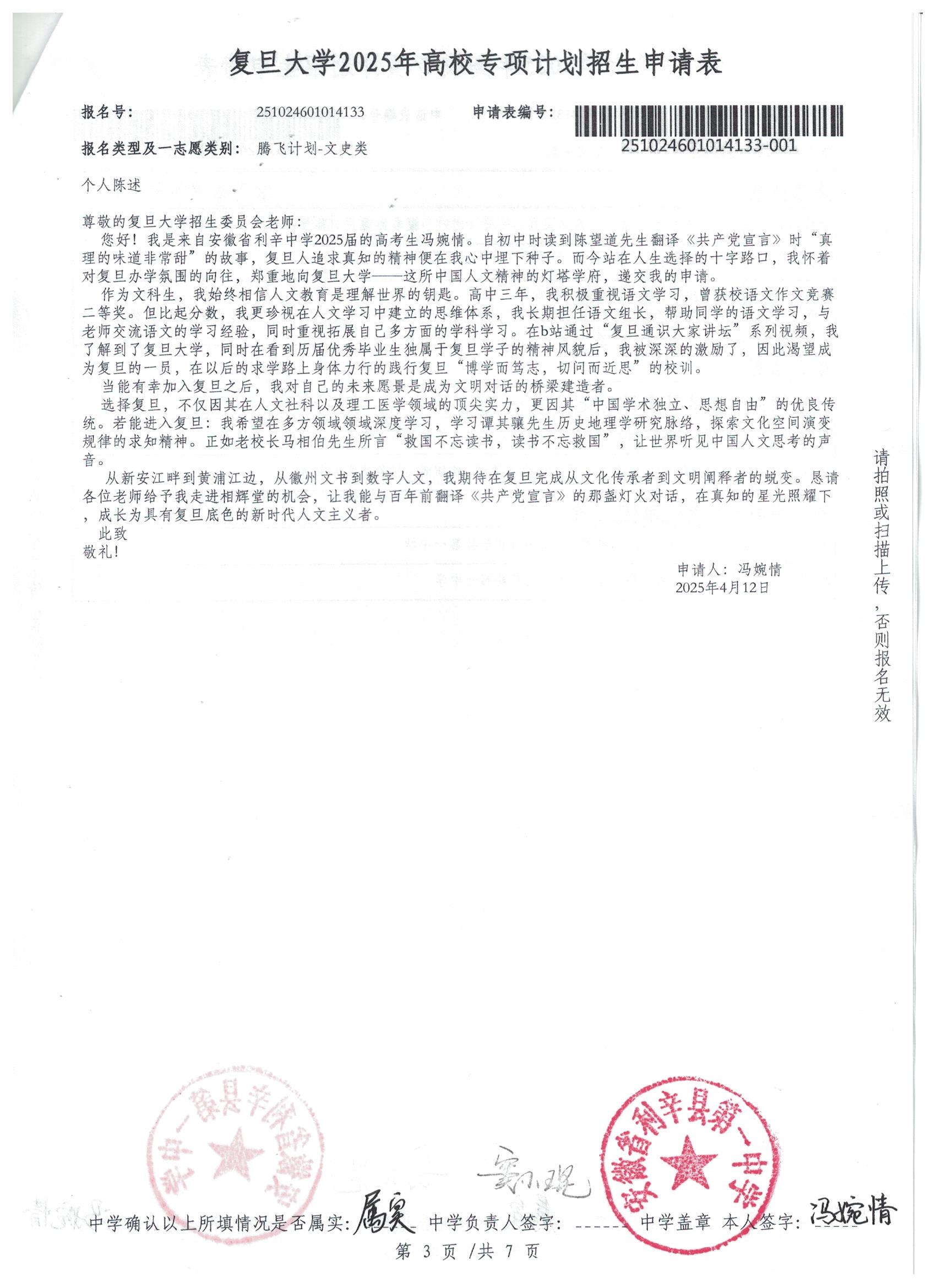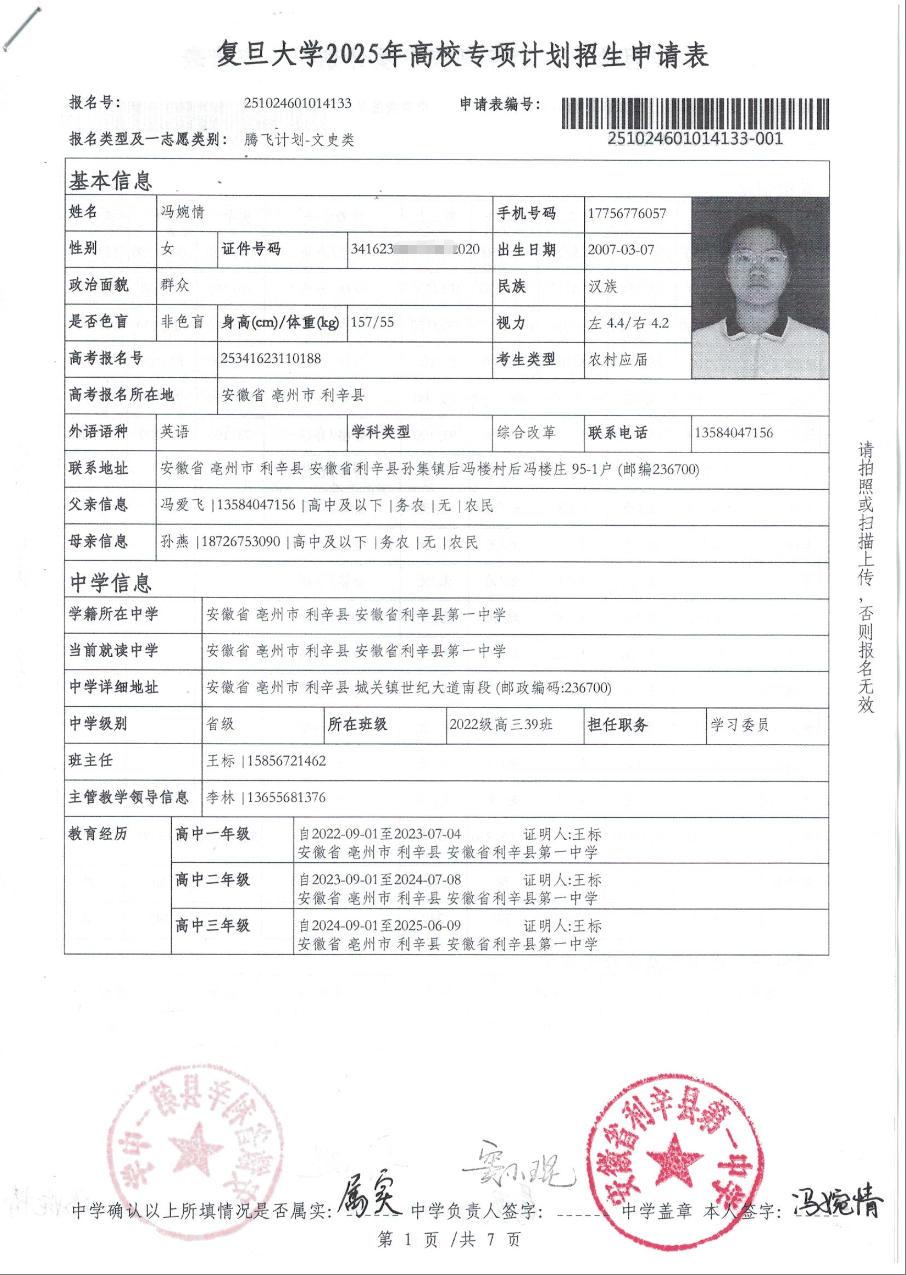 利辛一中2025届报考高校专项计划学生公示——冯婉情