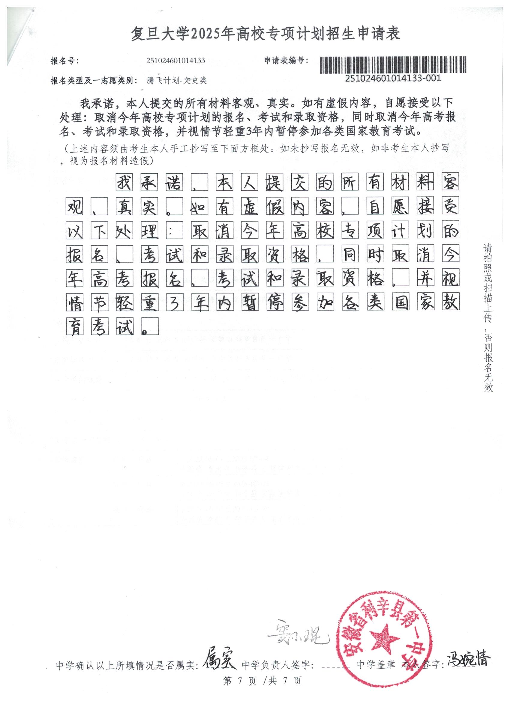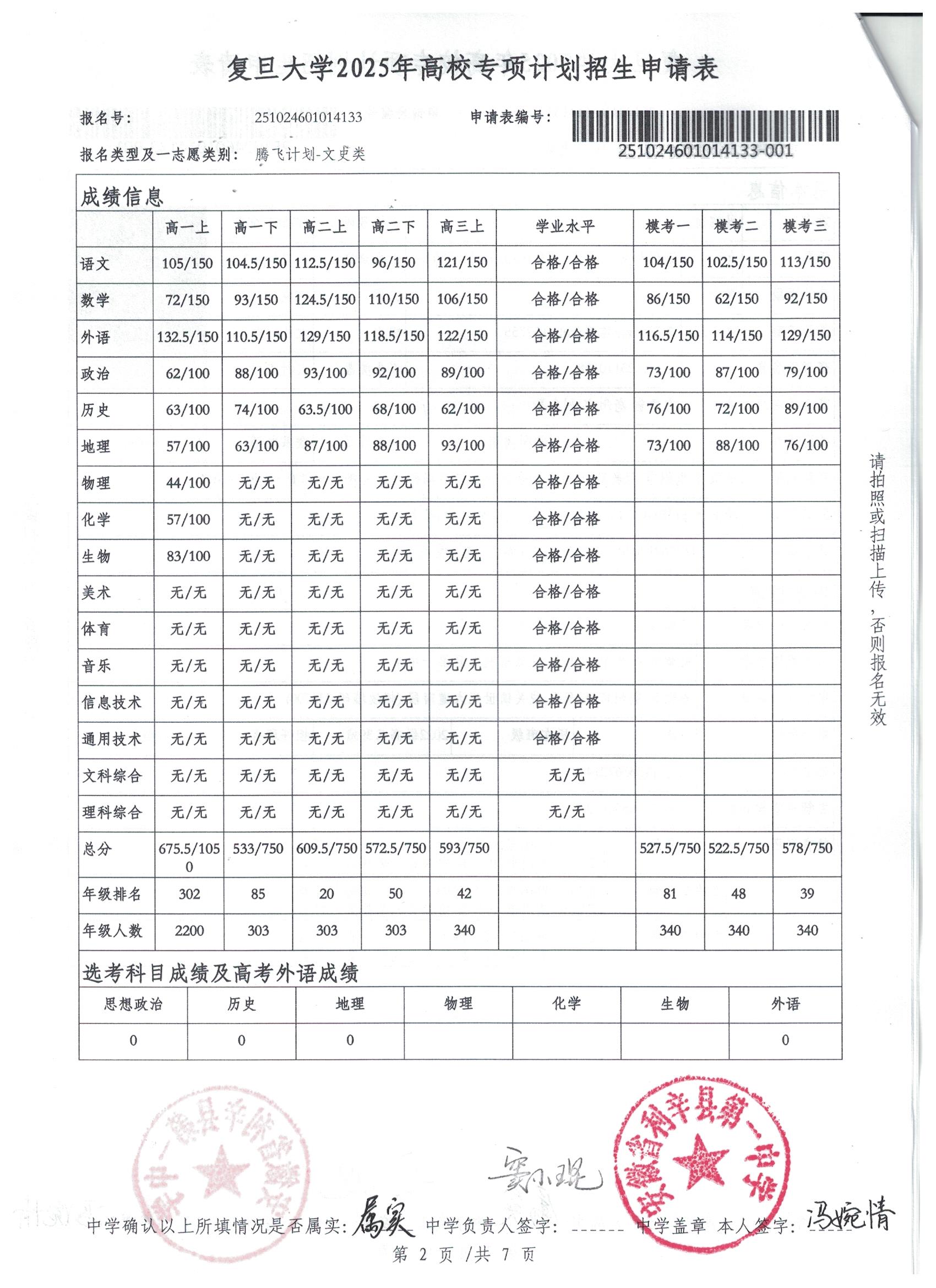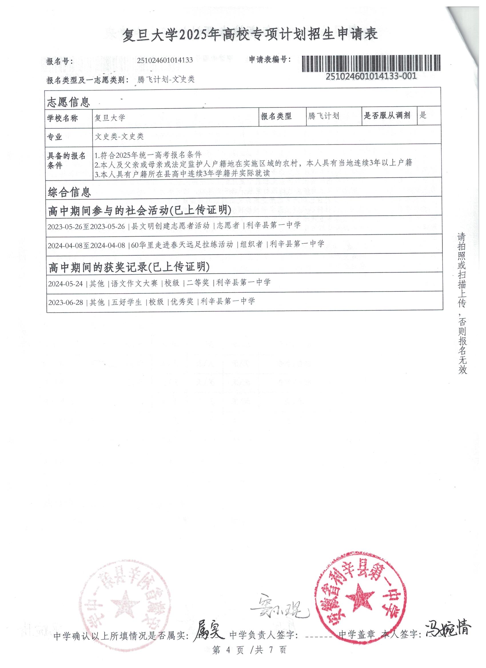 利辛一中2025届报考高校专项计划学生公示——冯婉情