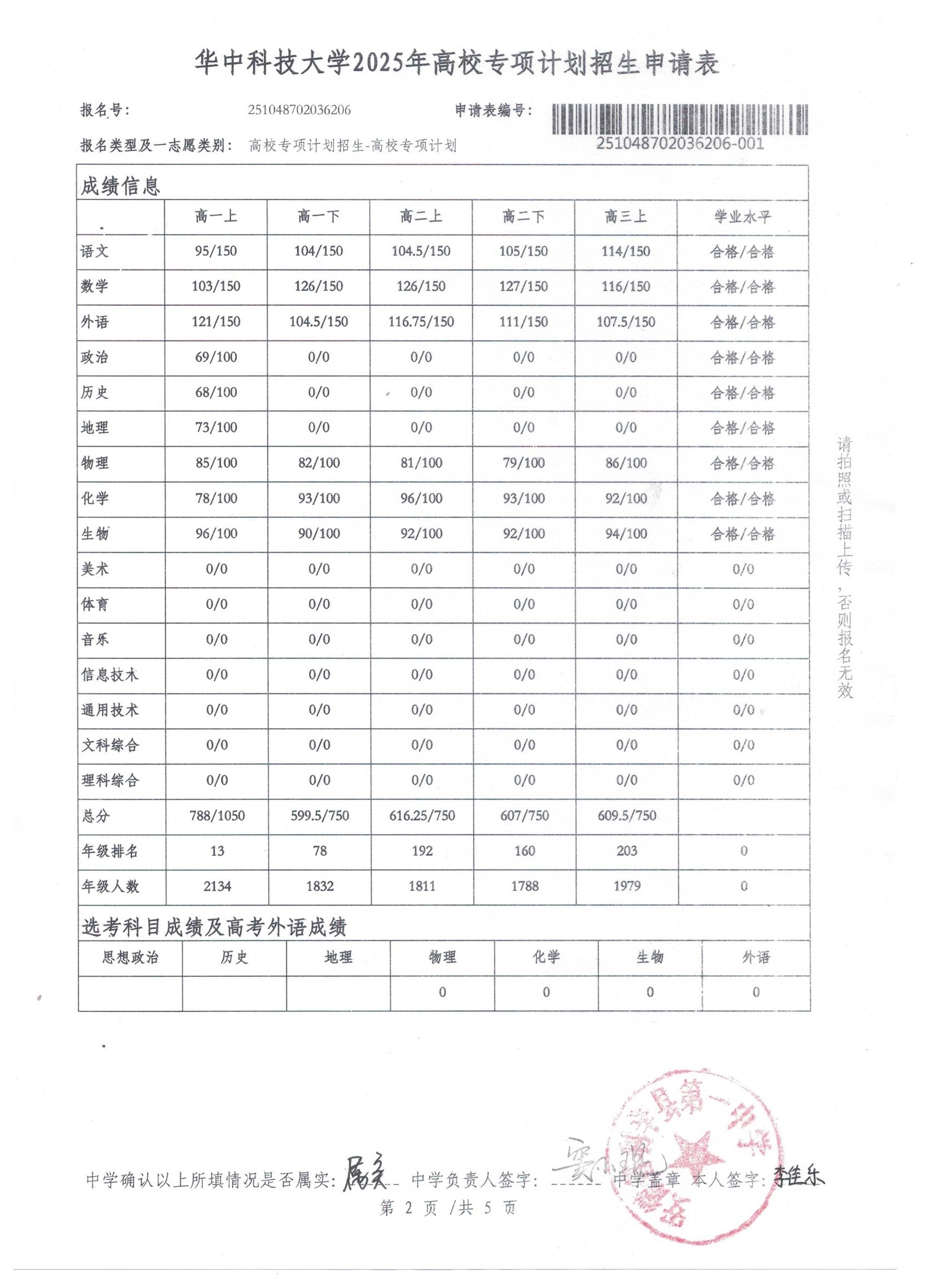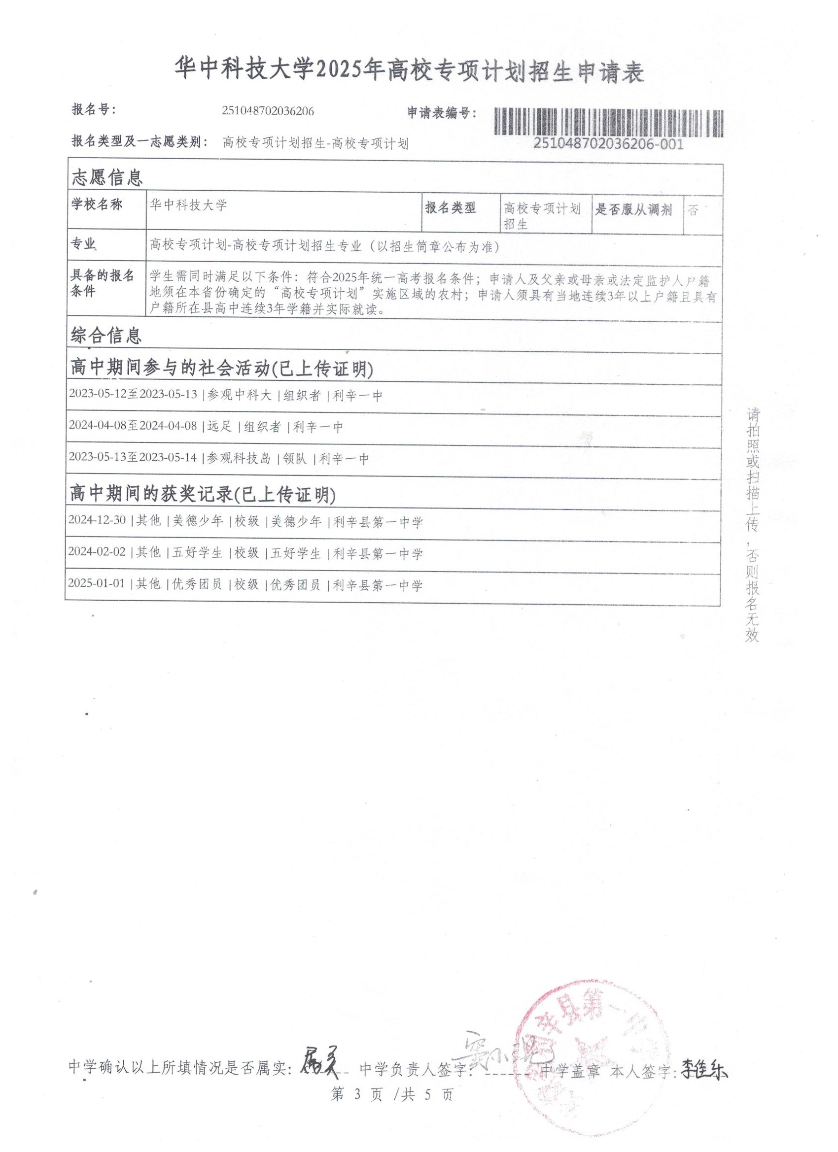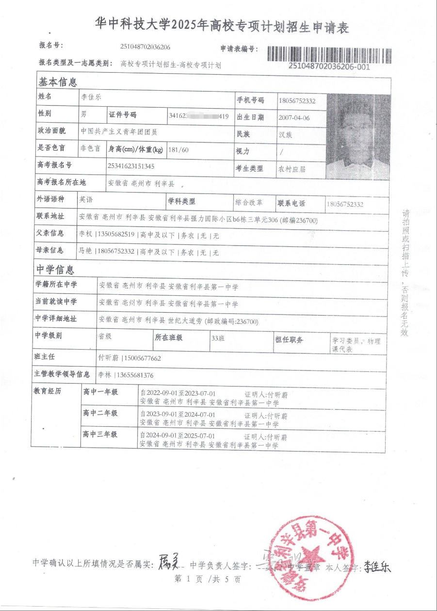 利辛一中2025届报考高校专项计划学生公示——李佳乐