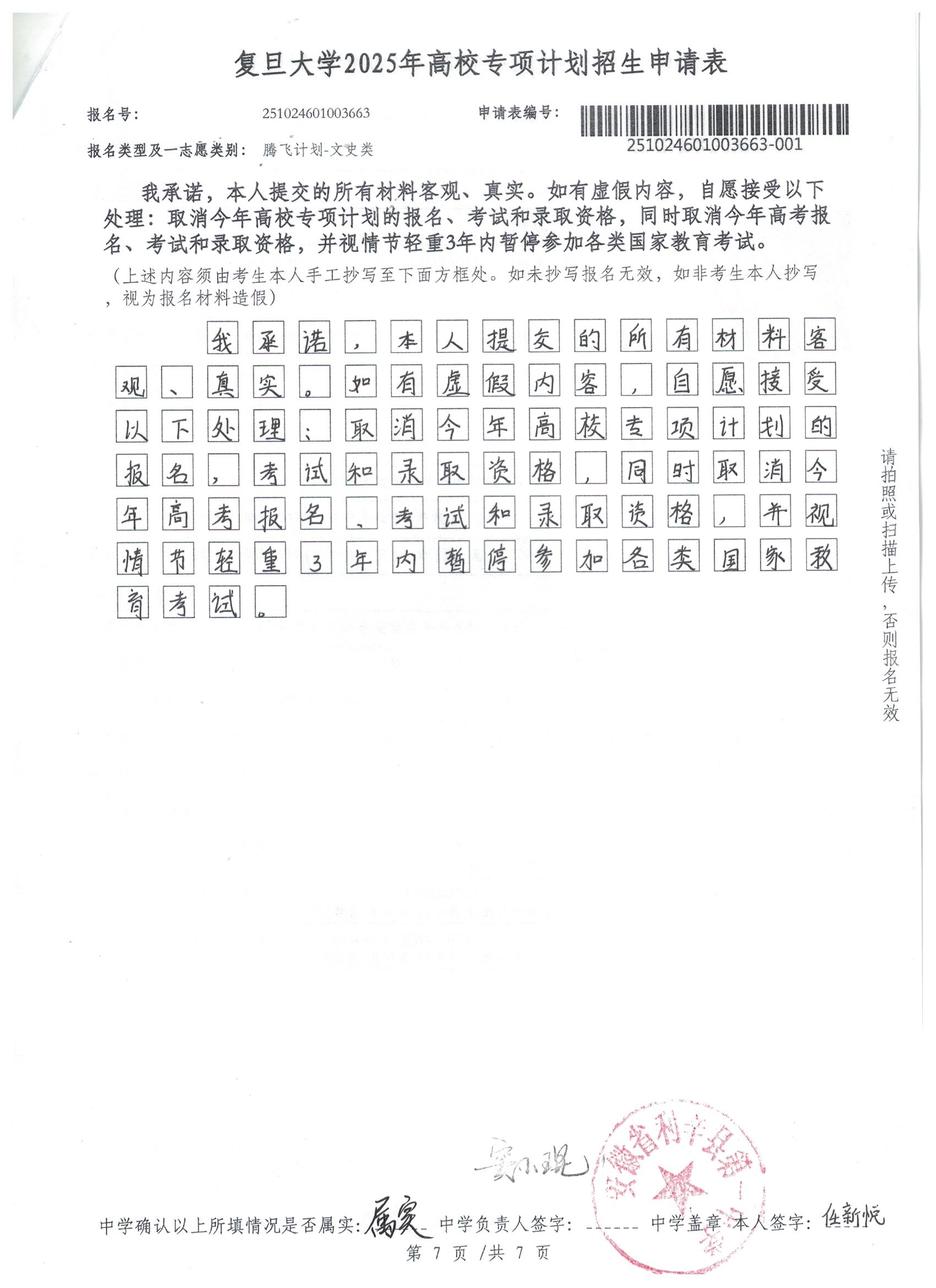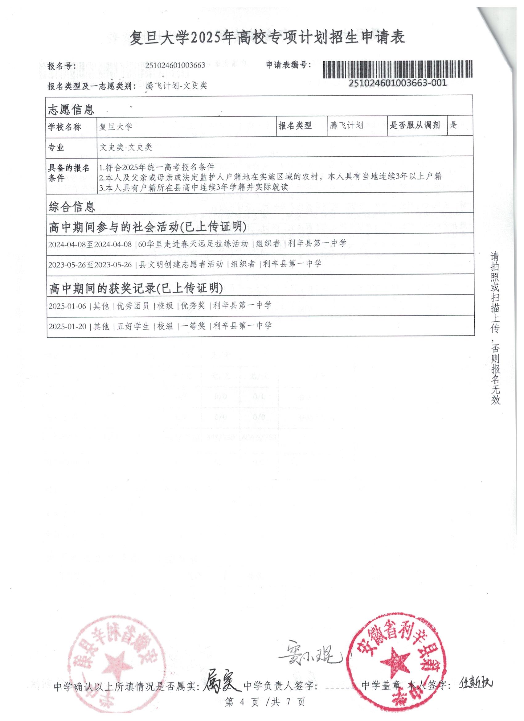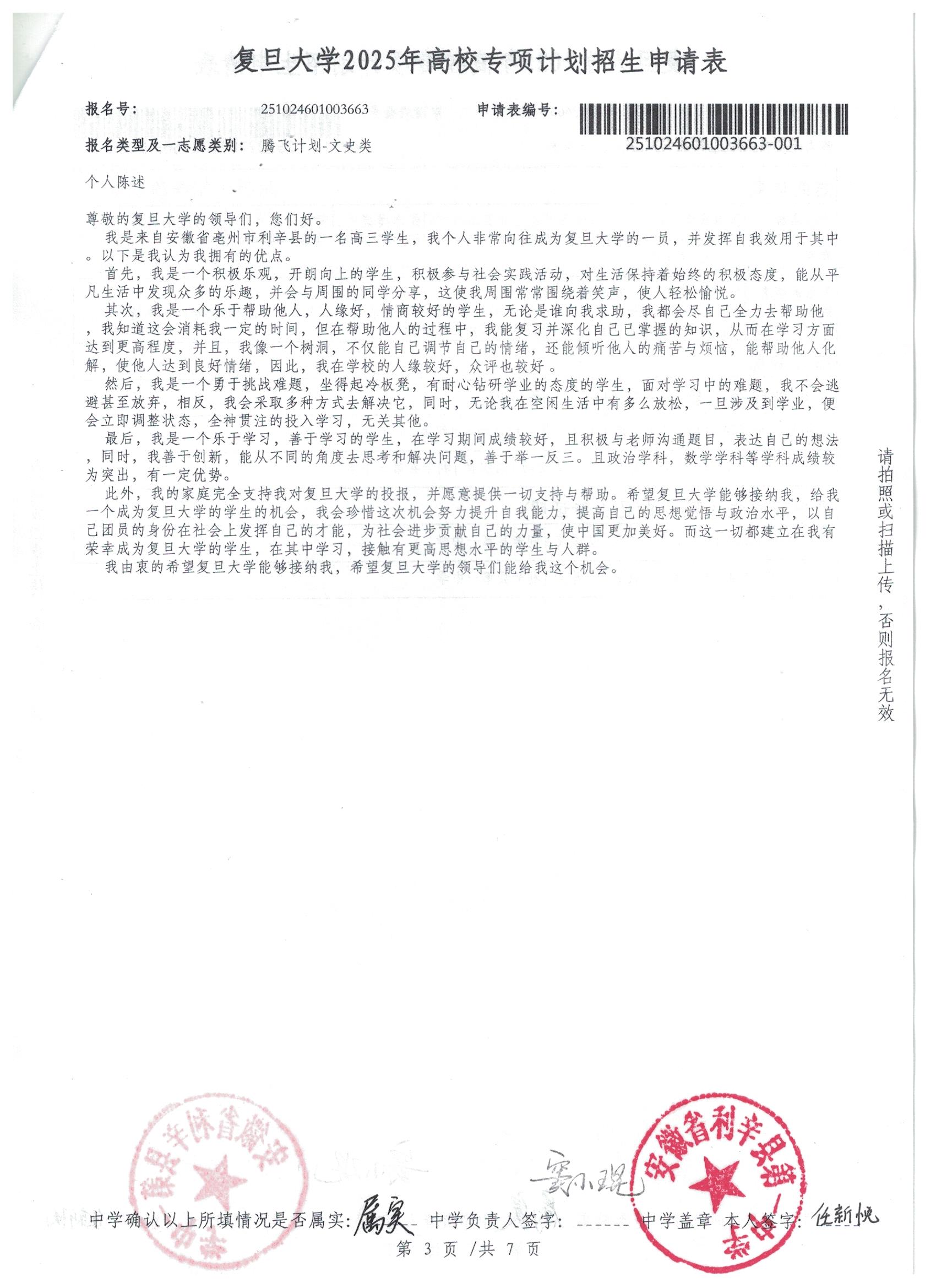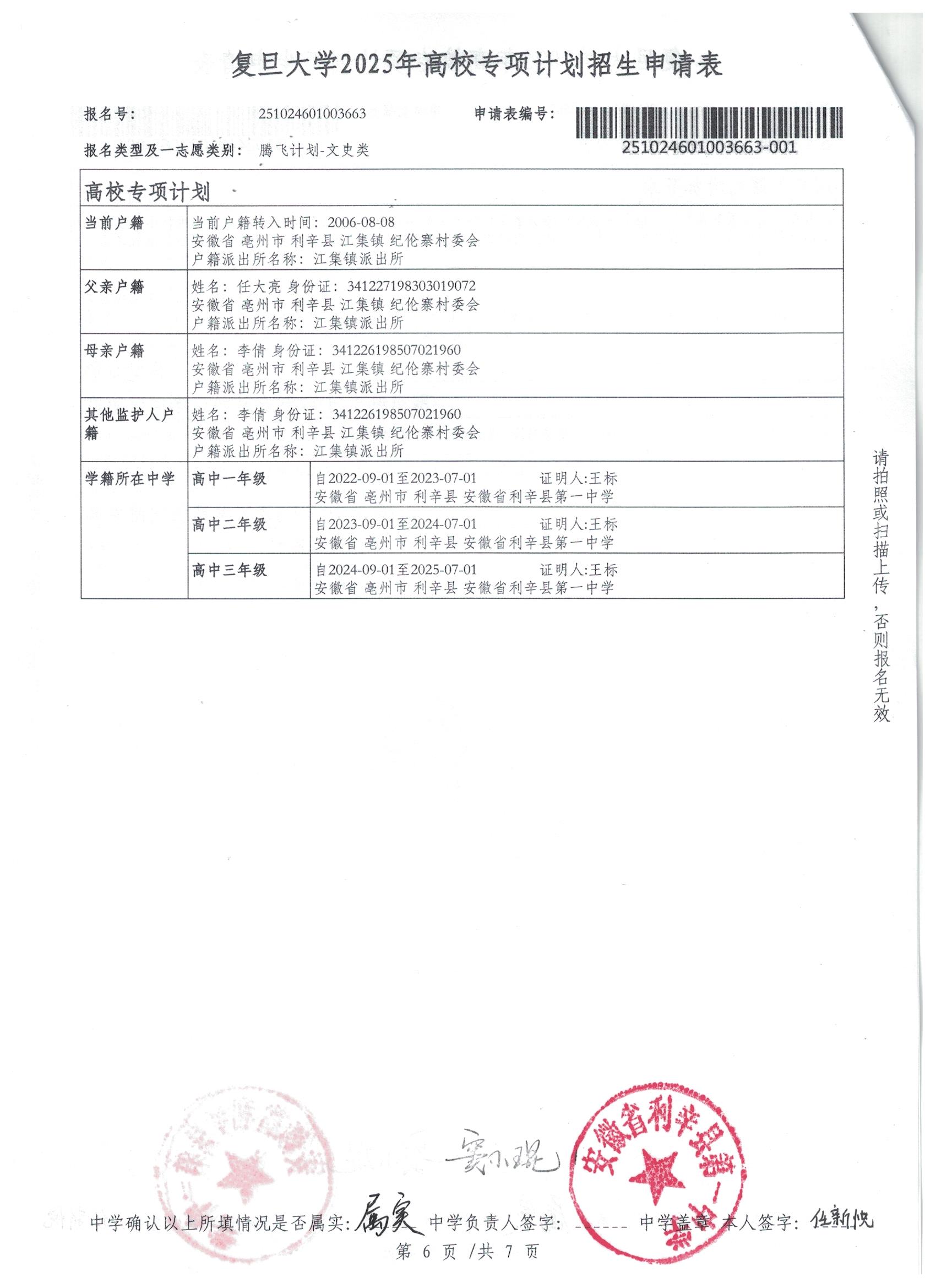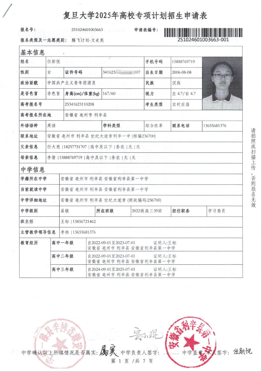 利辛一中2025届报考高校专项计划学生公示——任新悦