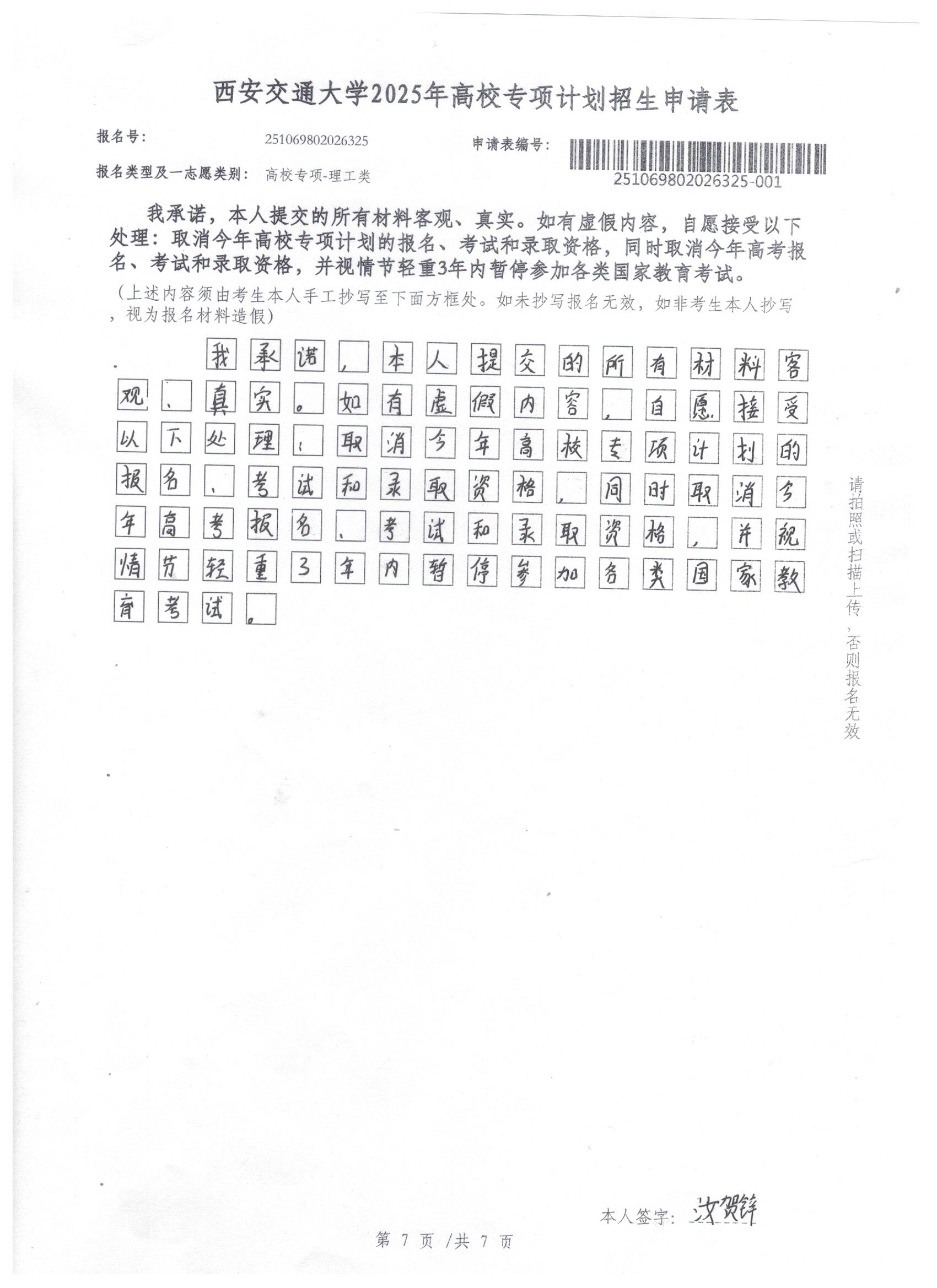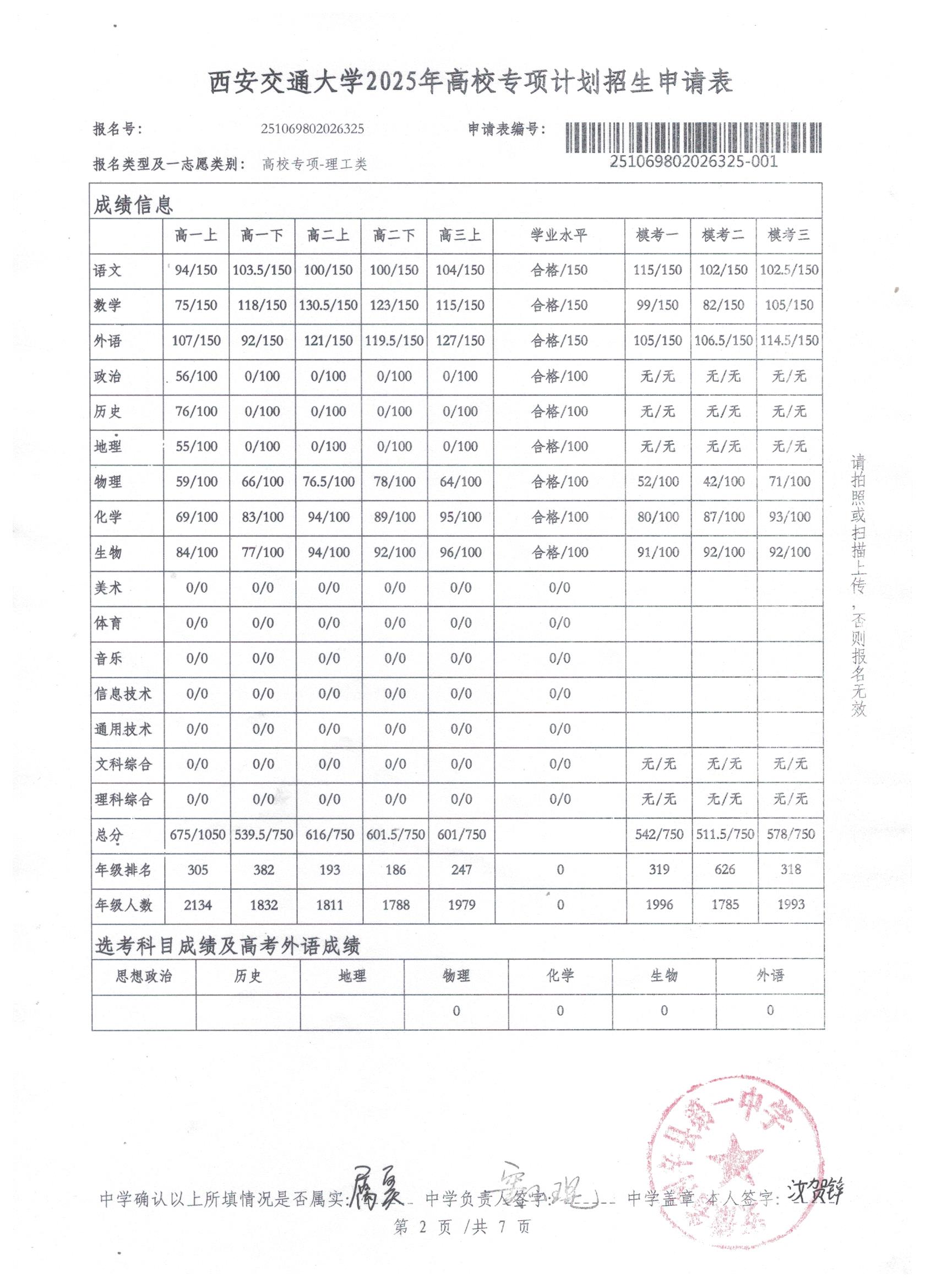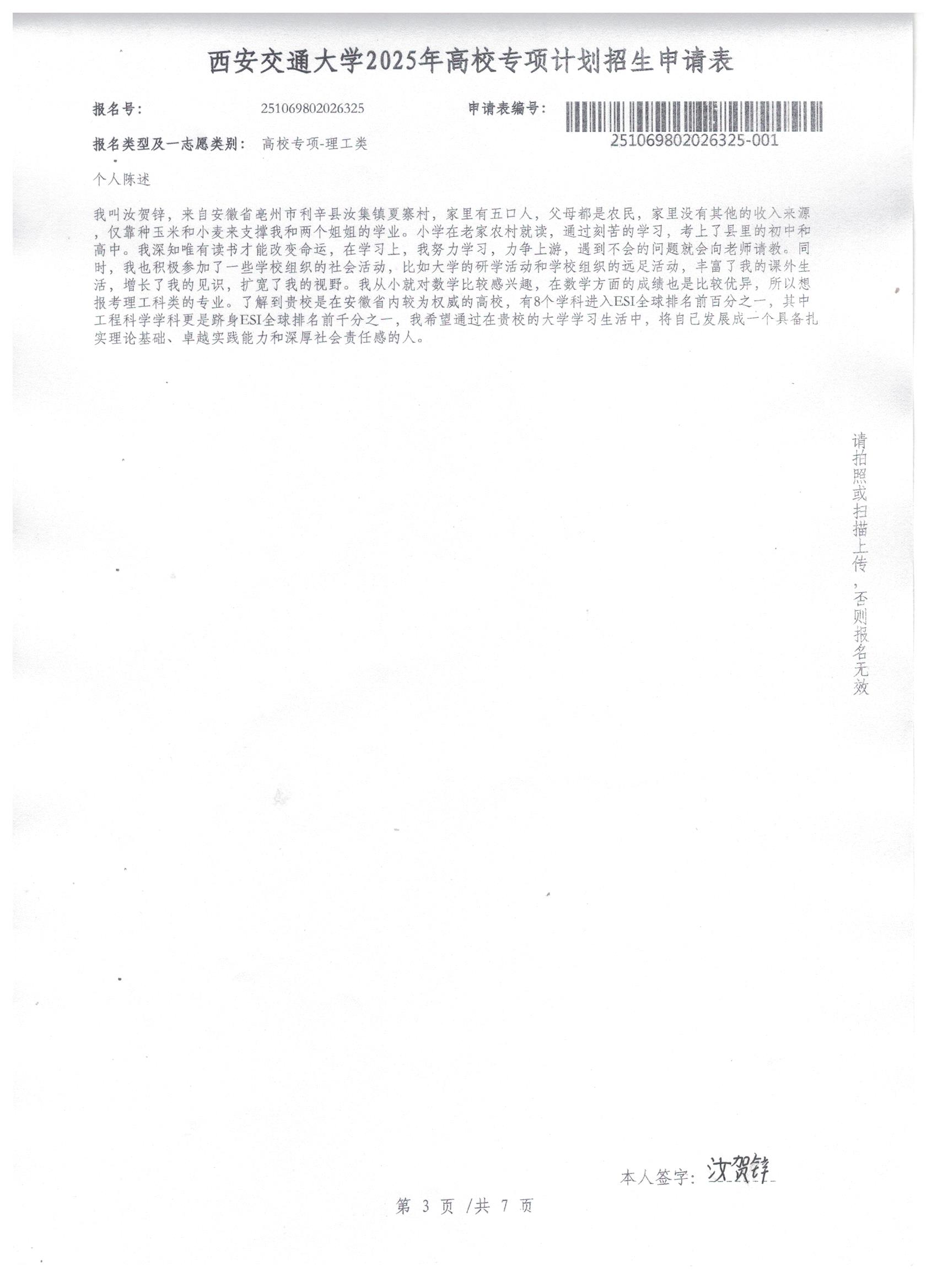 利辛一中2025届报考高校专项计划学生公示——汝贺锌