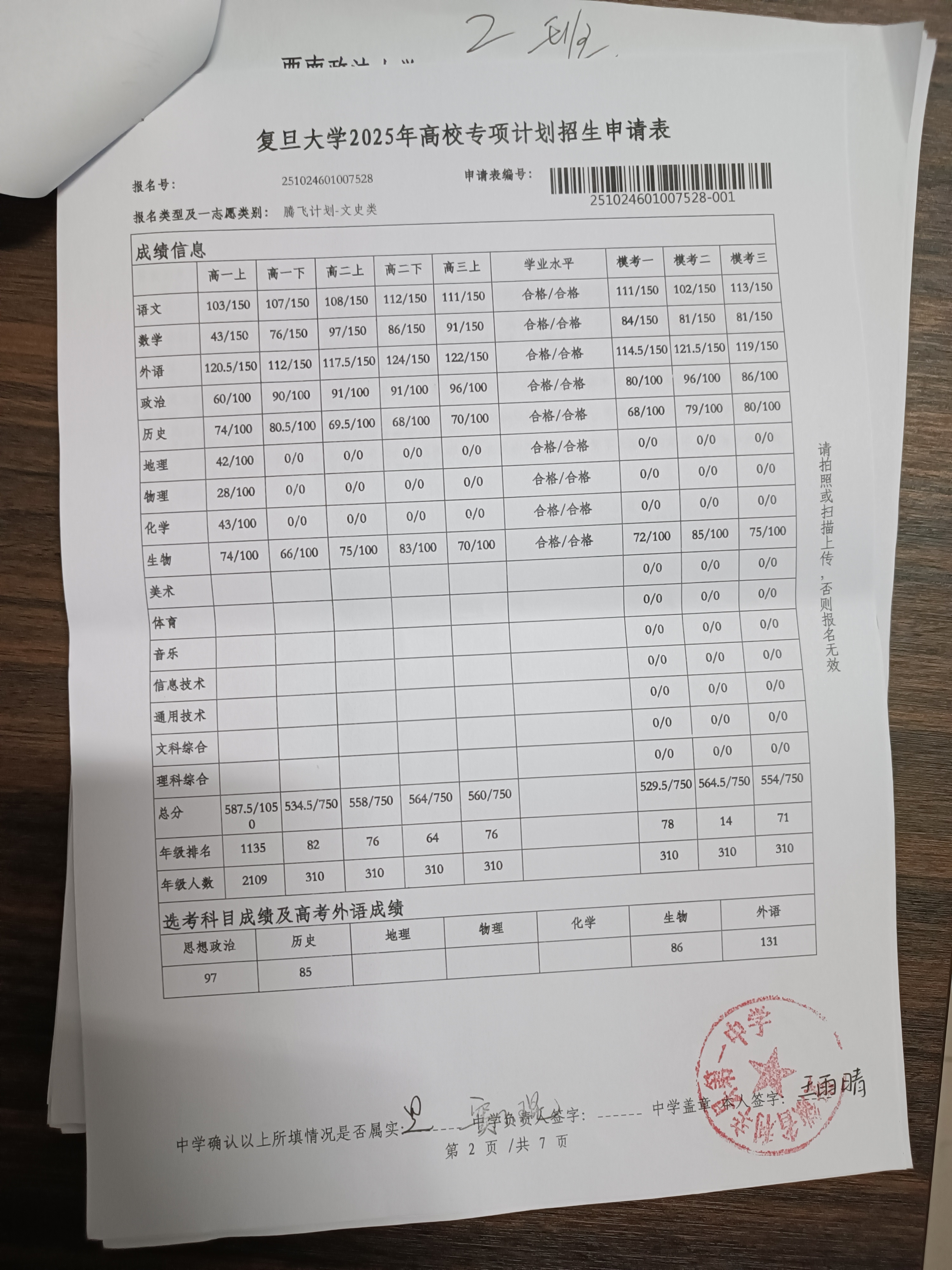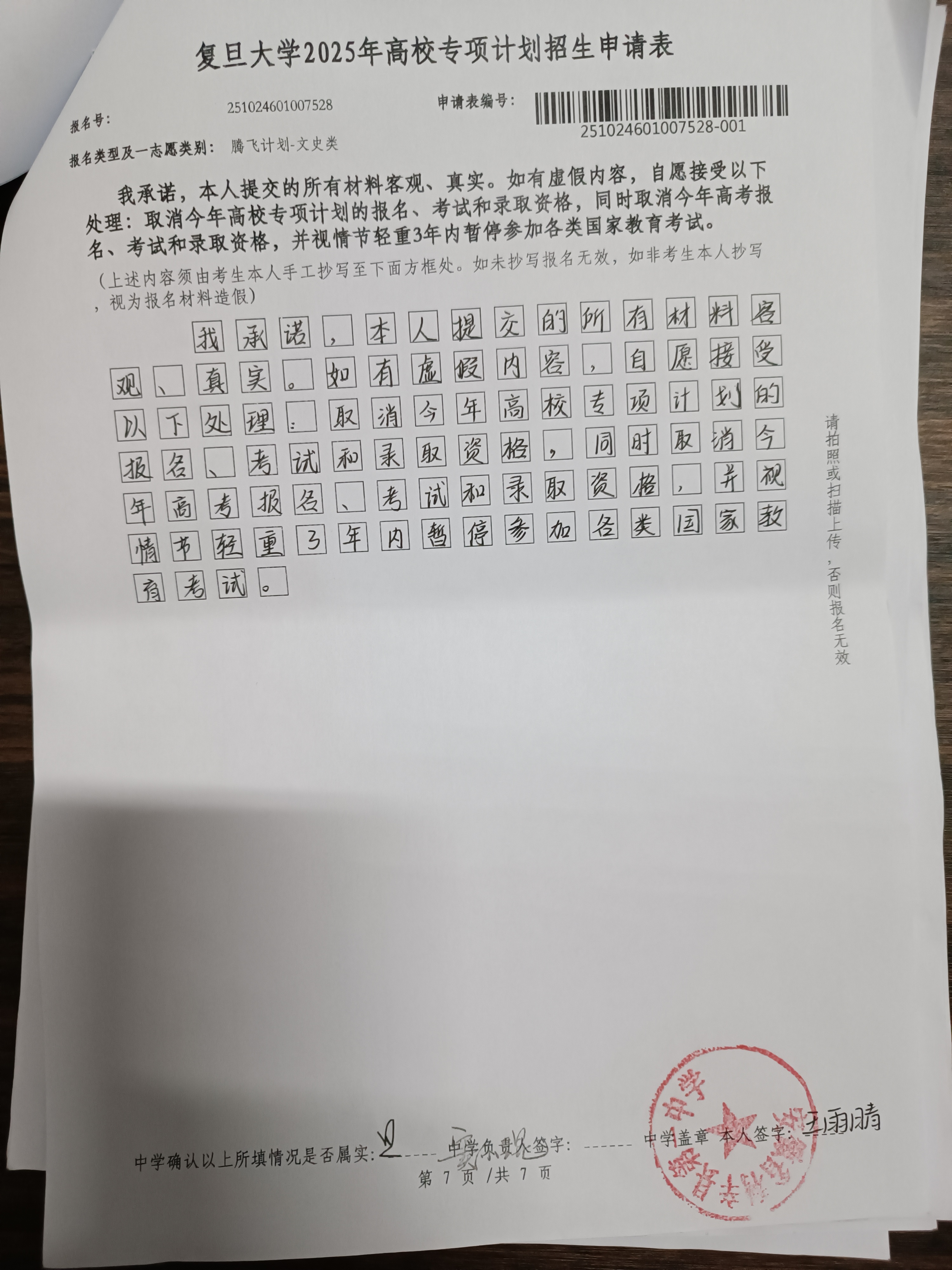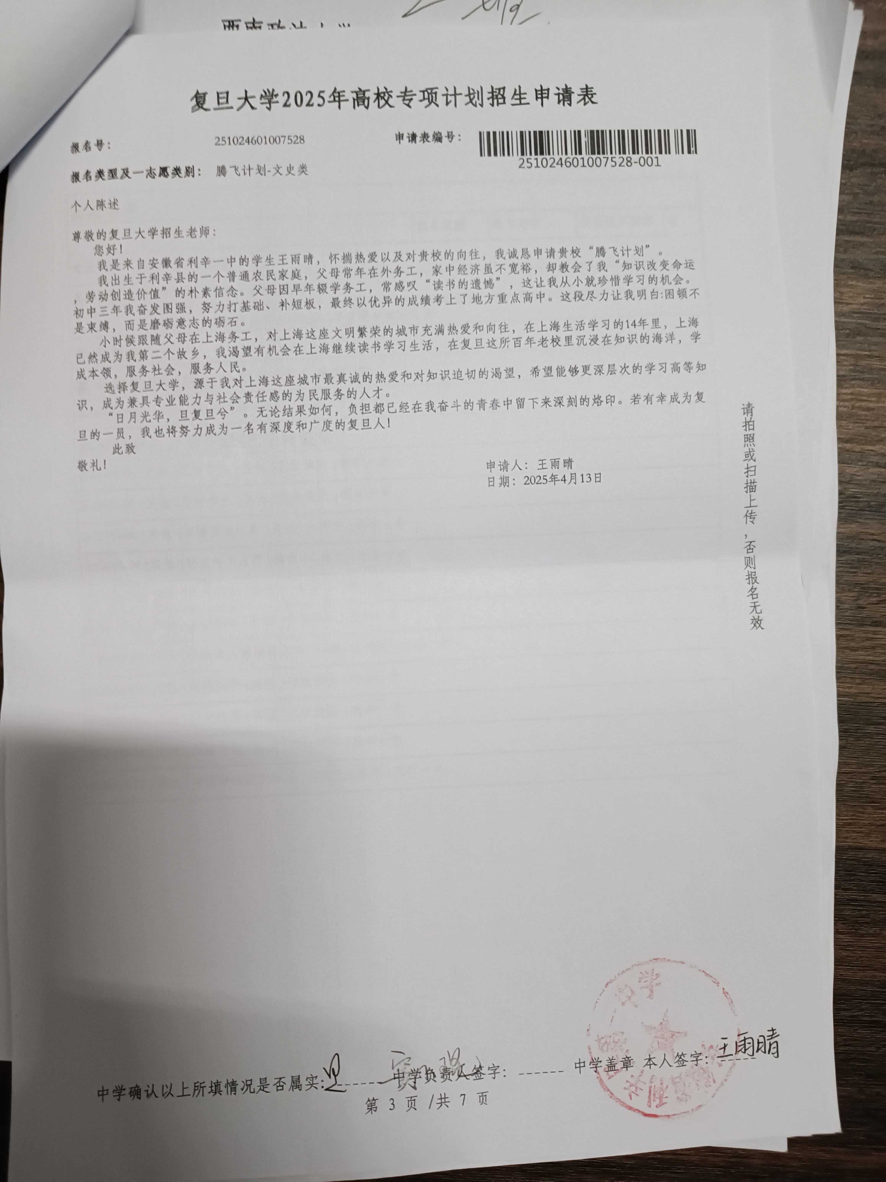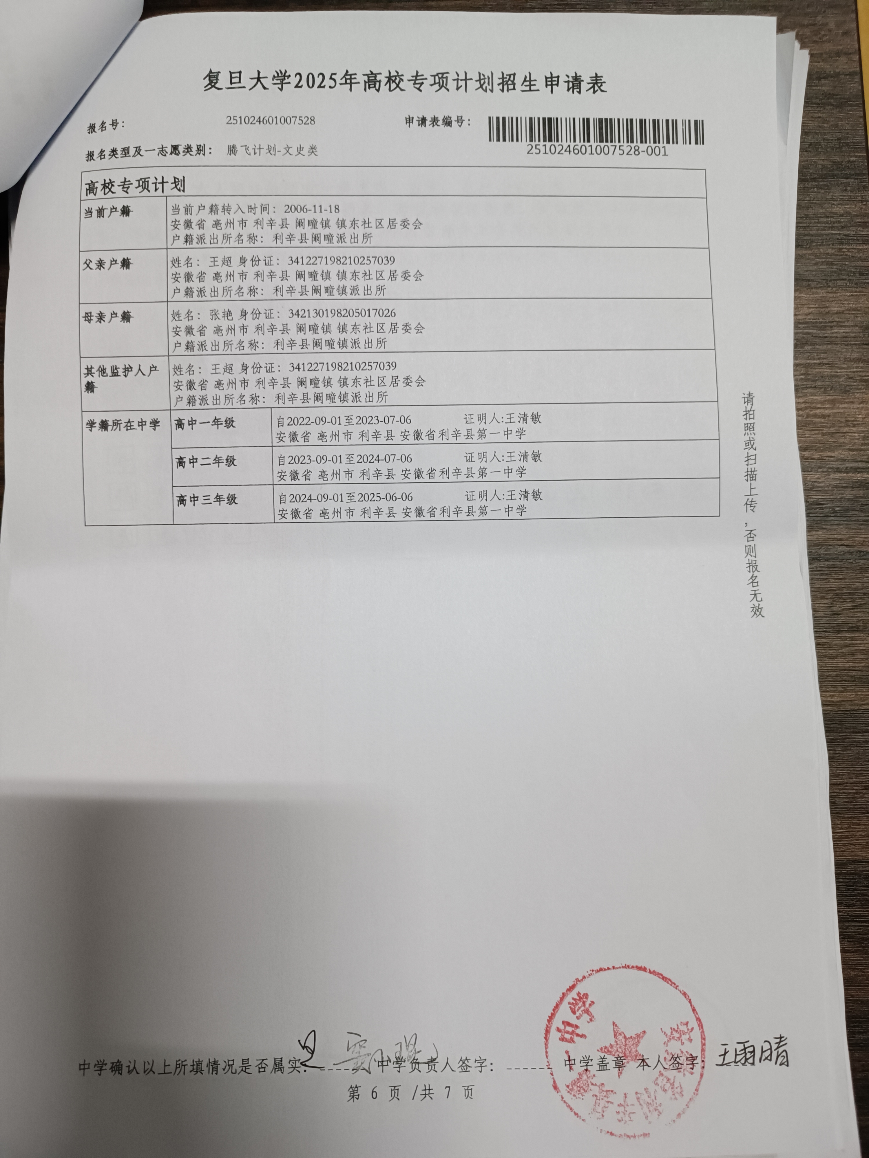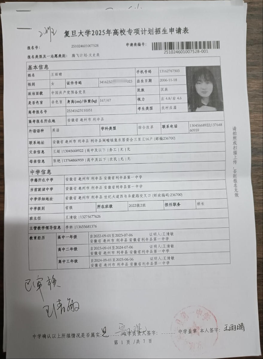 利辛一中2025届报考高校专项计划学生公示——王雨晴