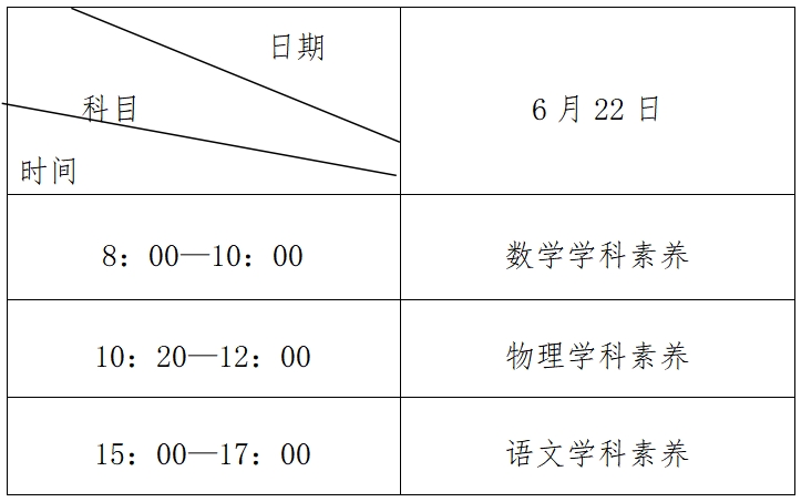 1.考核内容:包括科学素养考核(数学学科素养120分,物理学科素养100分)与人文素养考核(语文学科素养120分)。