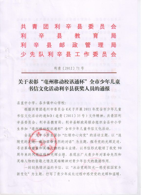 利青〔2012〕71号文件