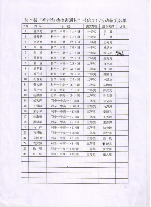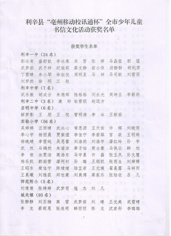 利辛一中(含利辛一中北校区)2023级高一录取学生名单
