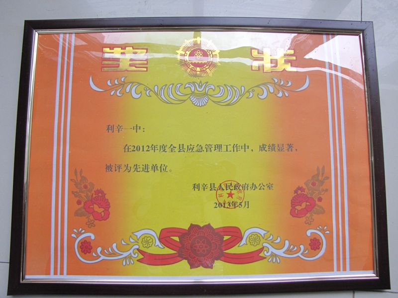 我校被评为2012年全县应急管理工作先进单位